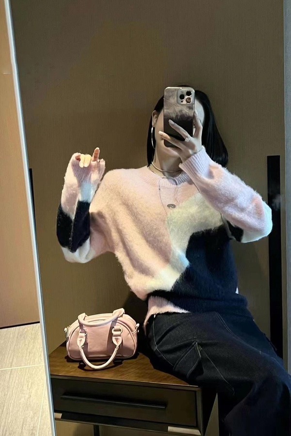 LNNNS 粉色撞色宽松圆头毛衣 21785