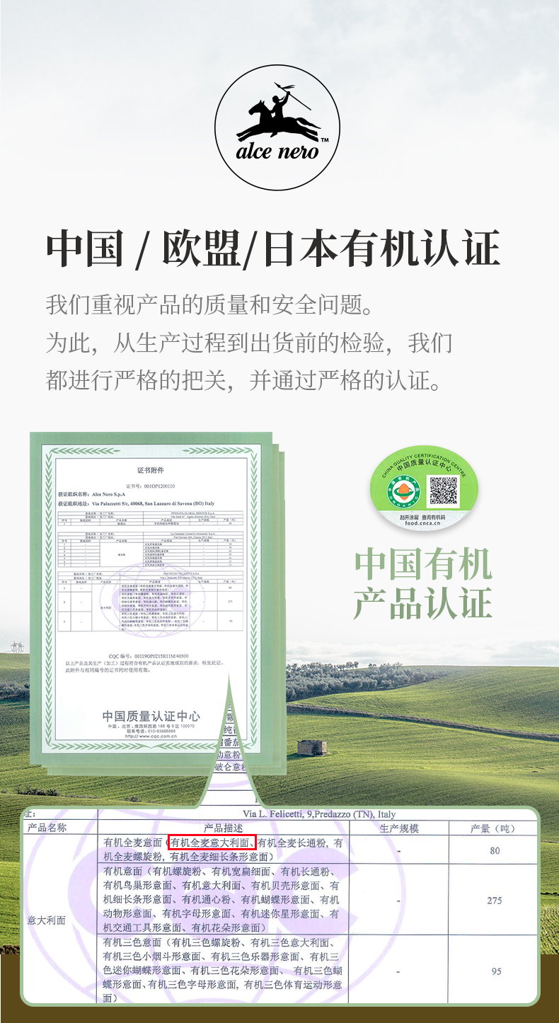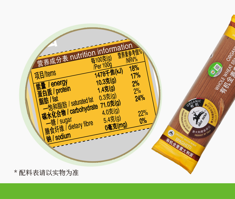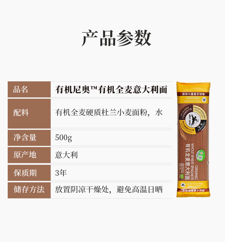 有机全麦意大利面 有机尼奥意面500g/袋【京东快递送货上门】