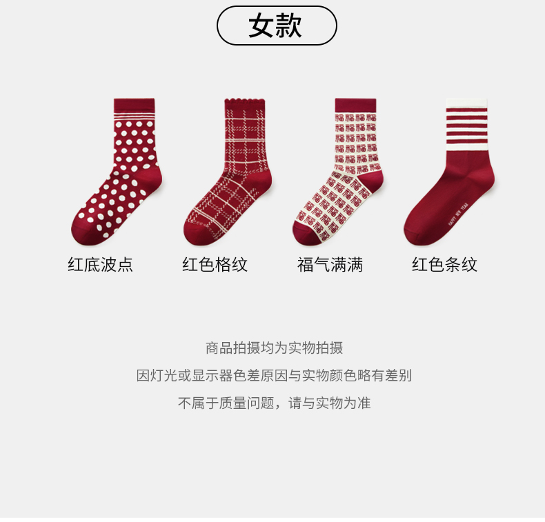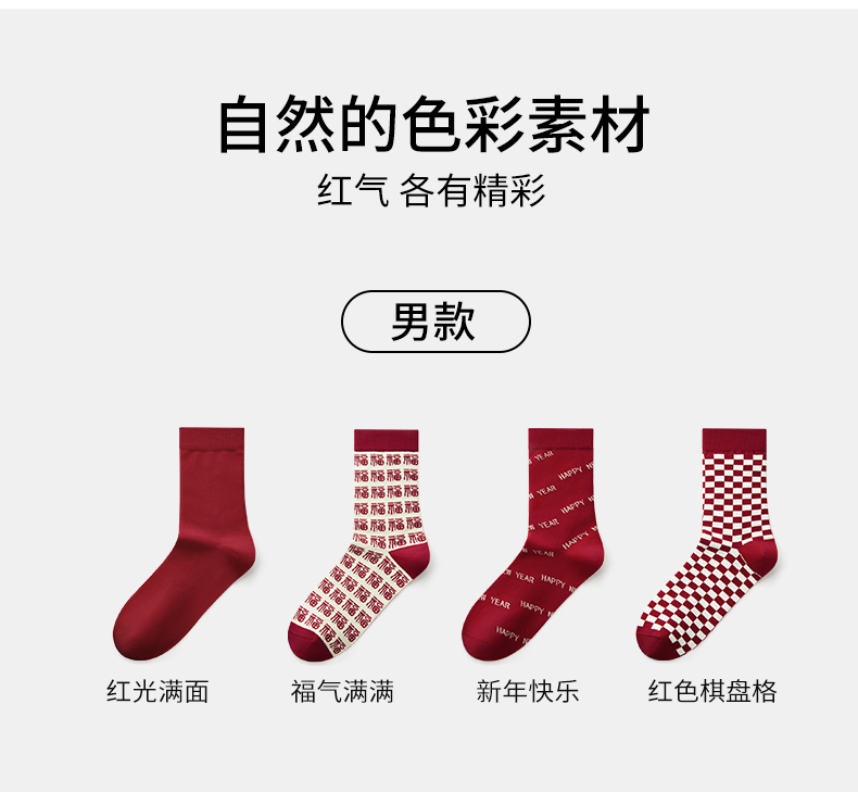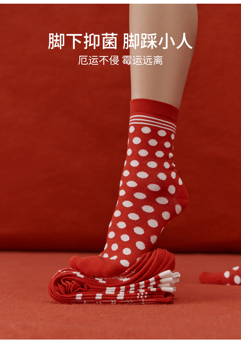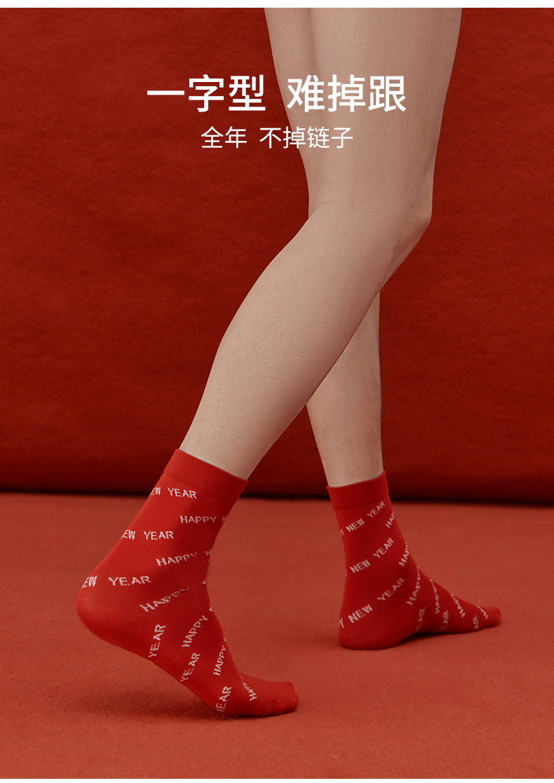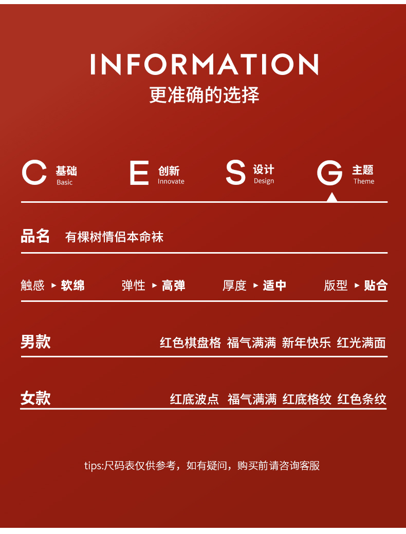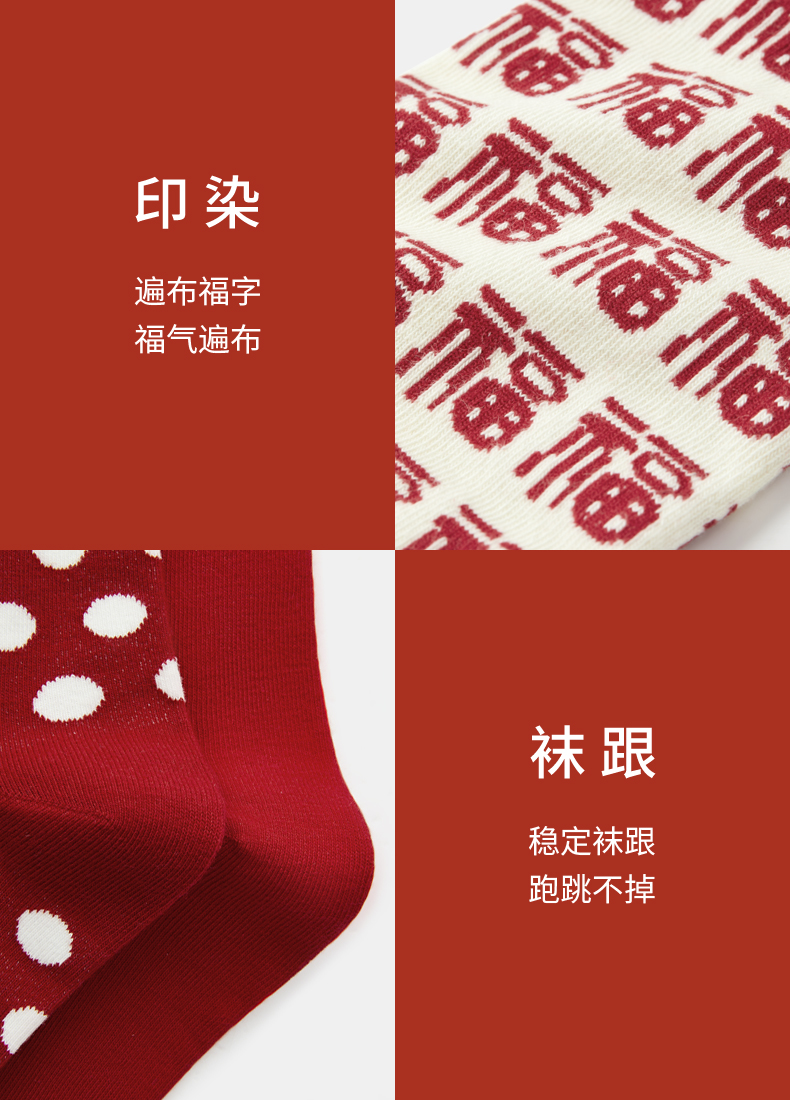 【新年限定】有棵树新年棉质设计款红运情侣中筒袜3双装G-QZ1004