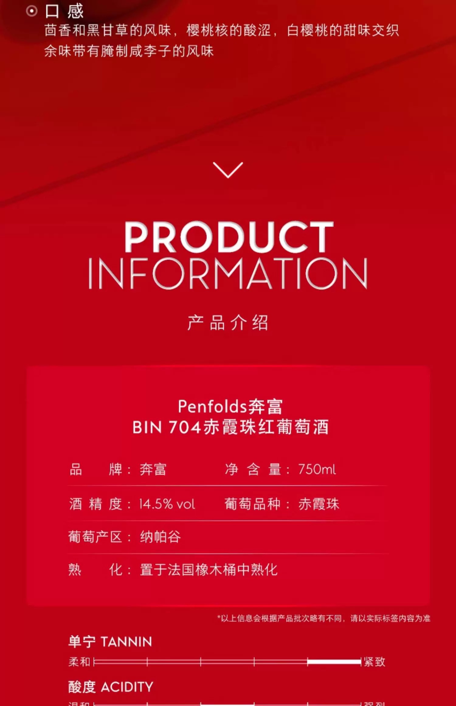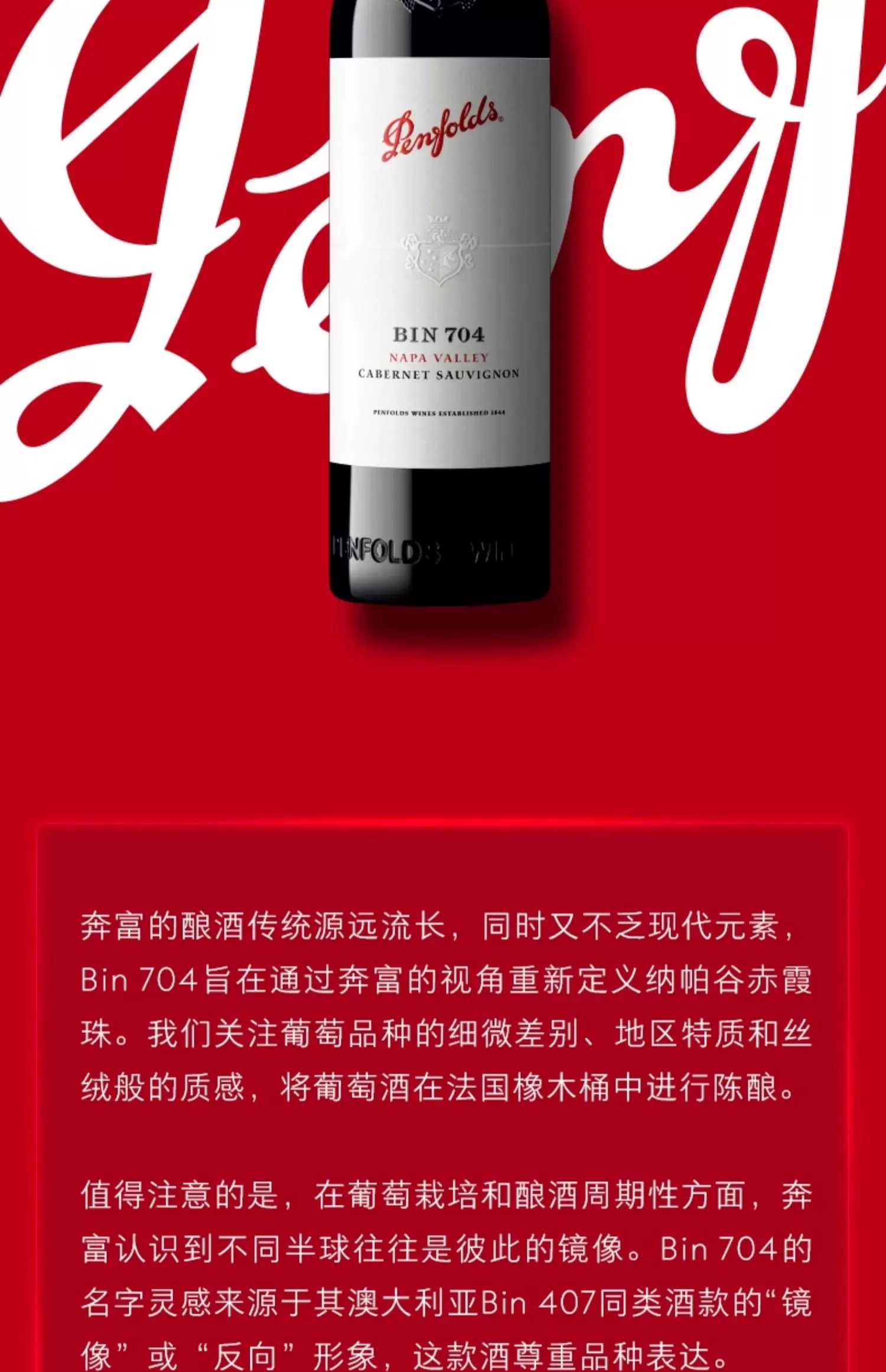 【直选好酒】奔富BIN704赤霞珠红葡萄酒750ml