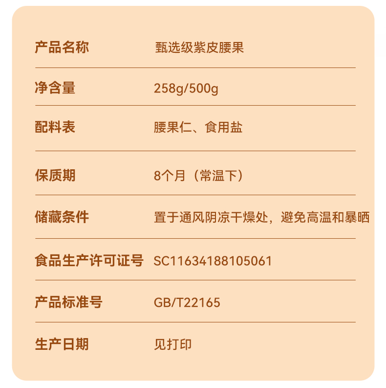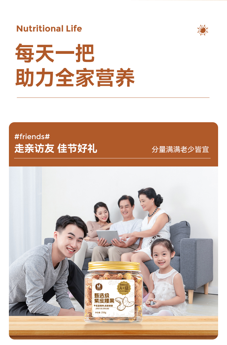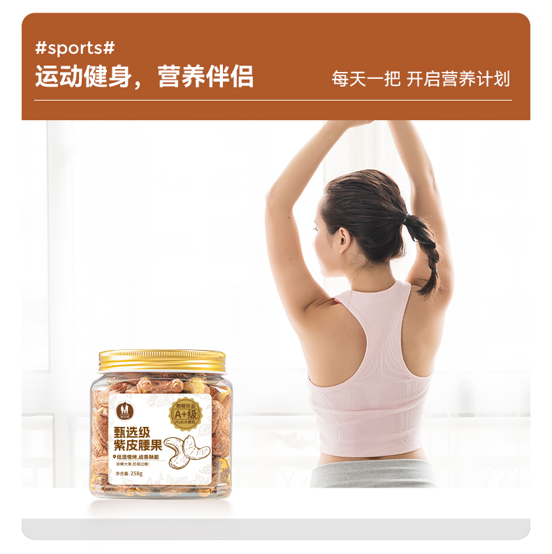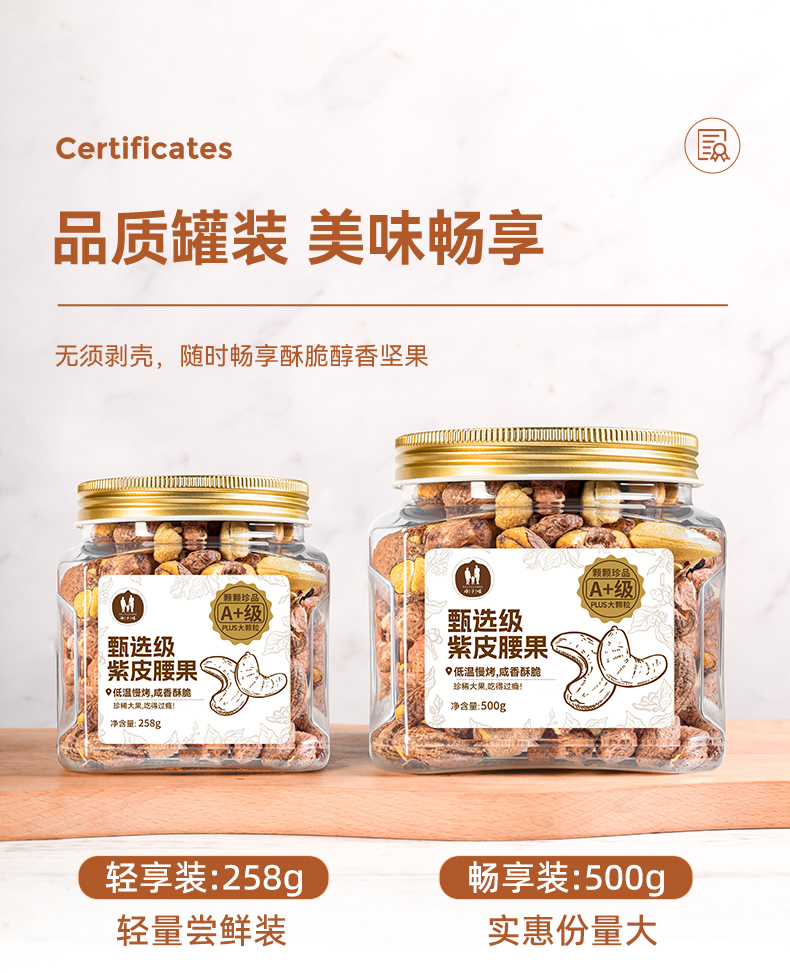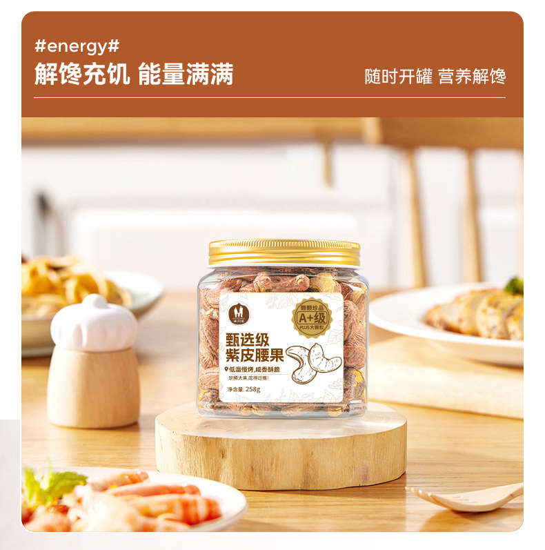 【推荐】海于唱 鲜香酥脆营养美味臻选级紫皮腰果258克罐装 A+级品质大果 优中选优5%