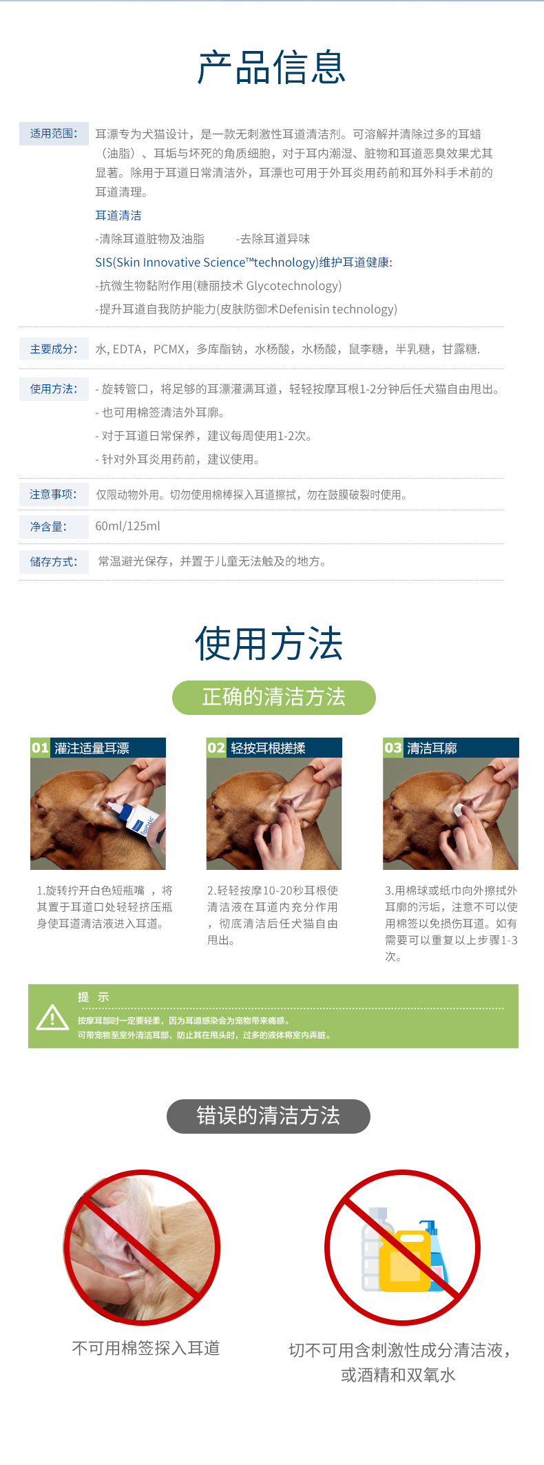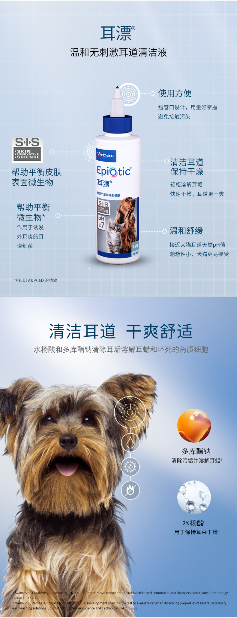维克耳漂 宠物专用耳朵清洗 预防耳螨 耳道清洁 滴耳液 法国