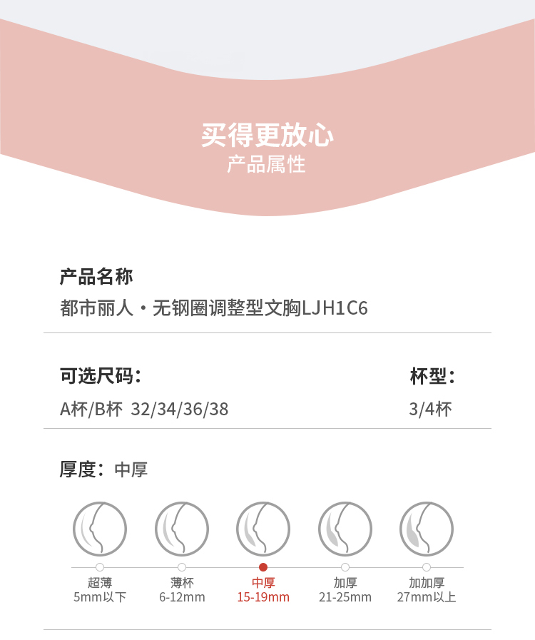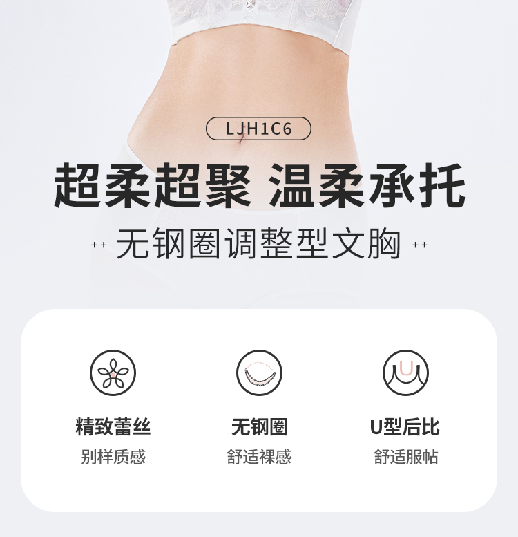 都市丽人美体纤塑调整型文胸中厚蕾丝无钢圈塑身文胸LJH1C6
