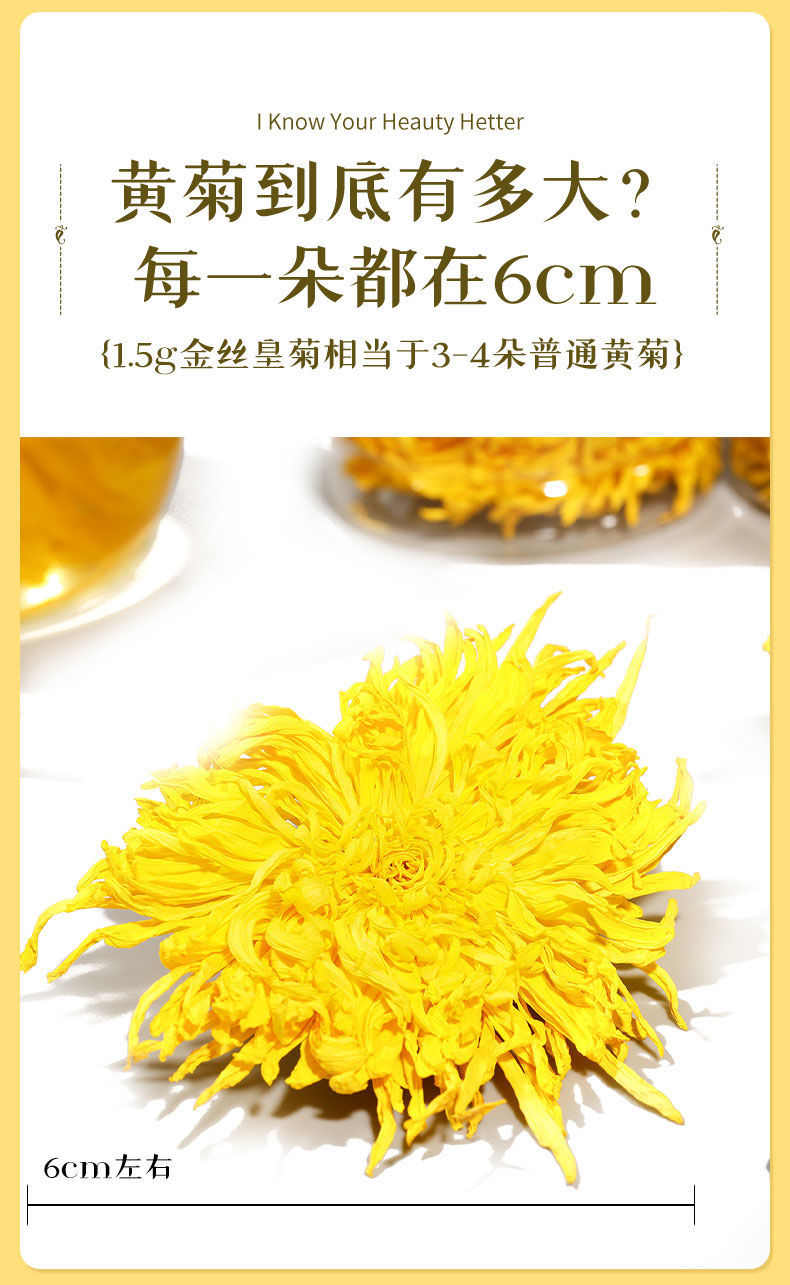 彤小茶金丝皇菊花茶特级一朵一杯大菊花茶正品大朵黄菊20朵贡菊清热清火