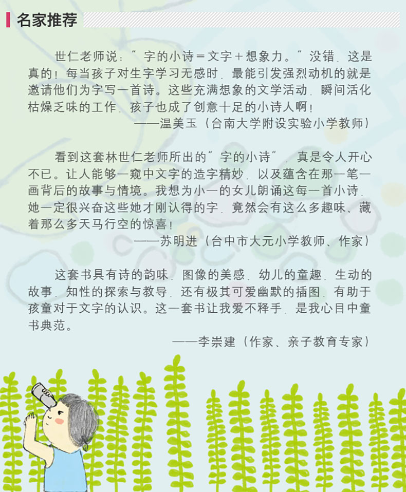 《字的小诗系列》注音版全3册 3-6岁 五位插画家连手绘制 童趣幽默 画中有字 带孩子一起寻宝 金鼎奖得主林世仁著作