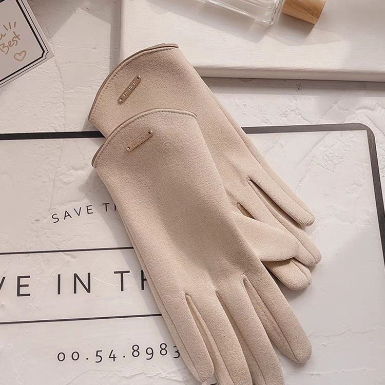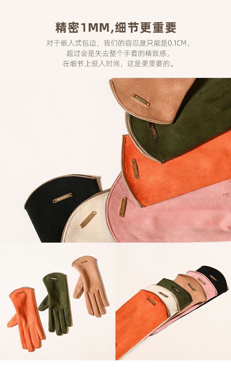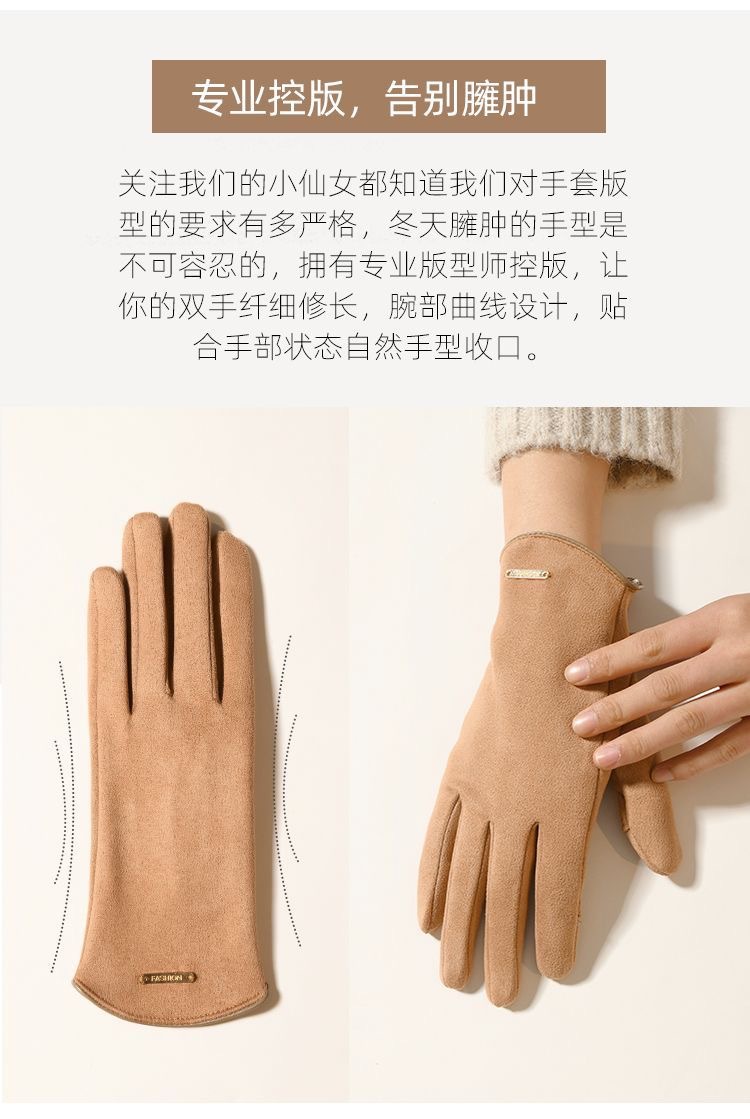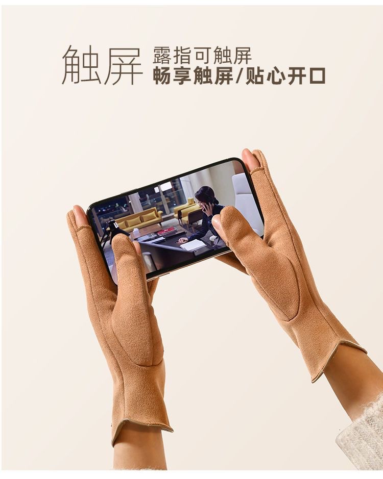 秋冬手套男德绒女款手套保暖加绒露指可触屏手套骑行半圆腕口时尚韩版手套秋冬保暖防风手套