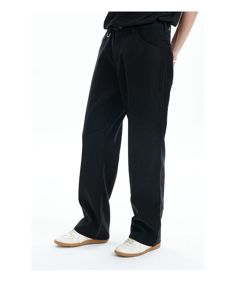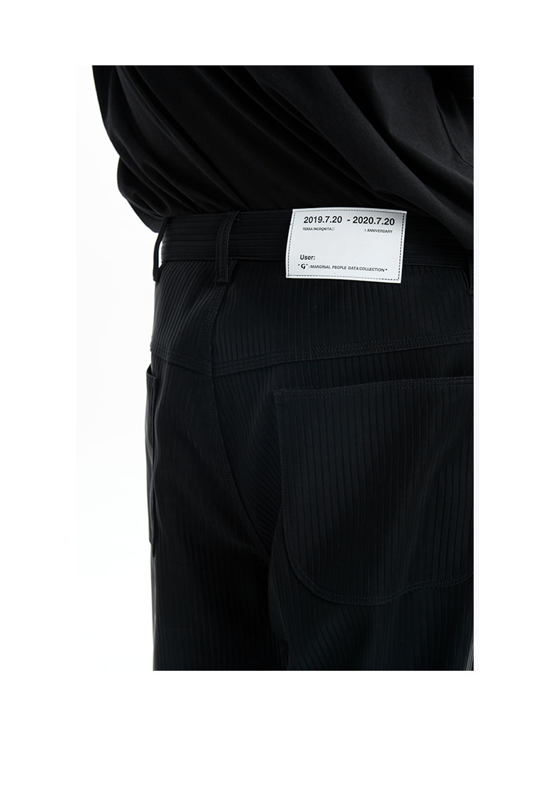 TERRAINCOGNITA2020G系列pu高质感哑光宽松百搭休闲长裤竖纹皮裤