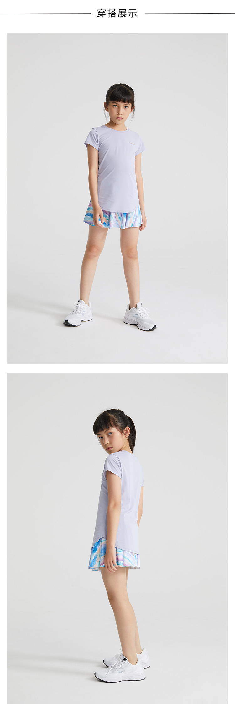 【24年夏新品】moodytiger24年夏新款女童运动休闲印花网球短袖T恤4221011
