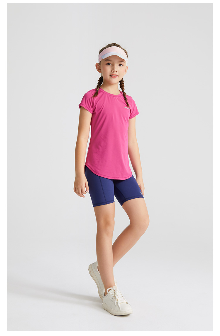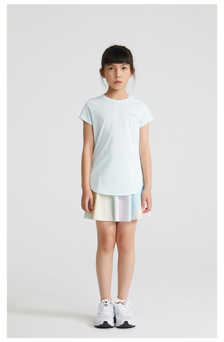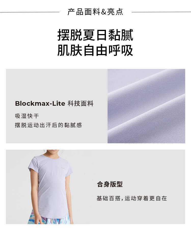 moodytiger女童短袖T恤2022夏季新款轻薄纯色速干短袖上衣| 深海 M22210103