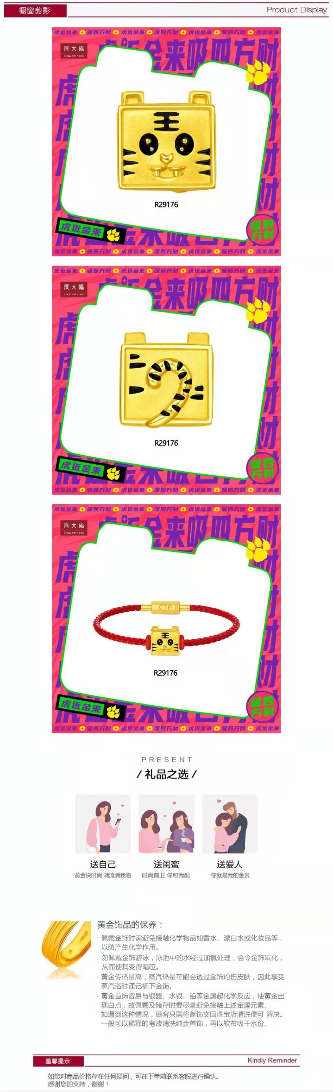 周大福虎年生肖虎进金来足金转运珠(不配手绳)R29176