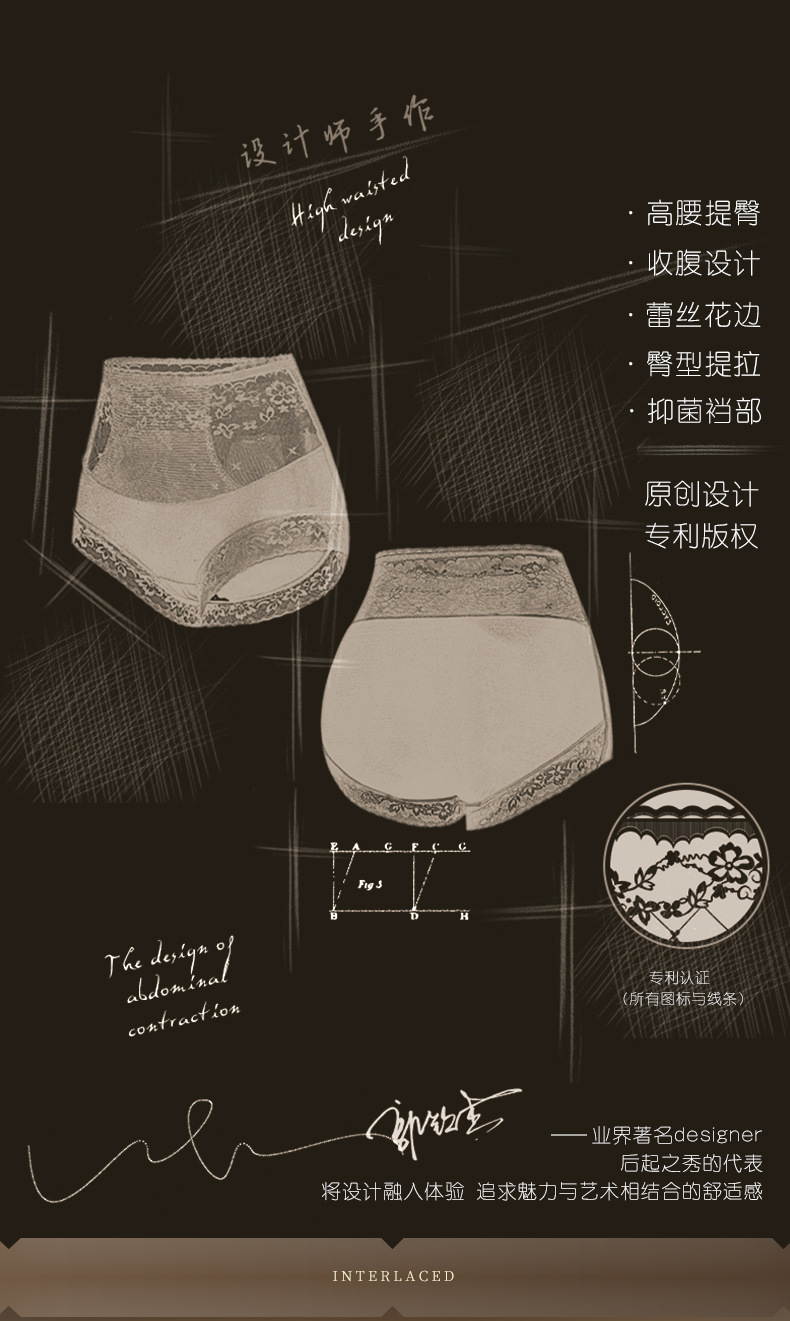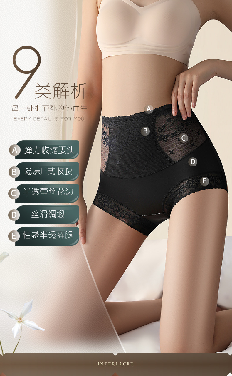 【性感半透边 穿出“蜜桃臀”】秋冬新品高腰性感蕾丝收腹内裤,聚乳酸桑蚕丝5A抑jun裆,好穿不夹臀,提拉臀部,丝滑绸缎,半透蕾丝花边,性感半透裤腿,柔软触感干爽不闷热!