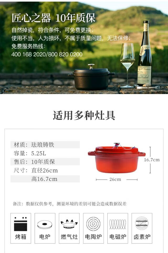 双立人-staub珐宝26cm(基础色)大容量珐琅锅铸铁锅多功能煲汤炖锅/个(颜色备注)