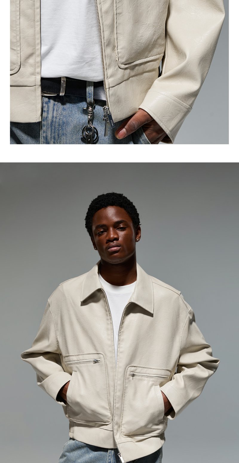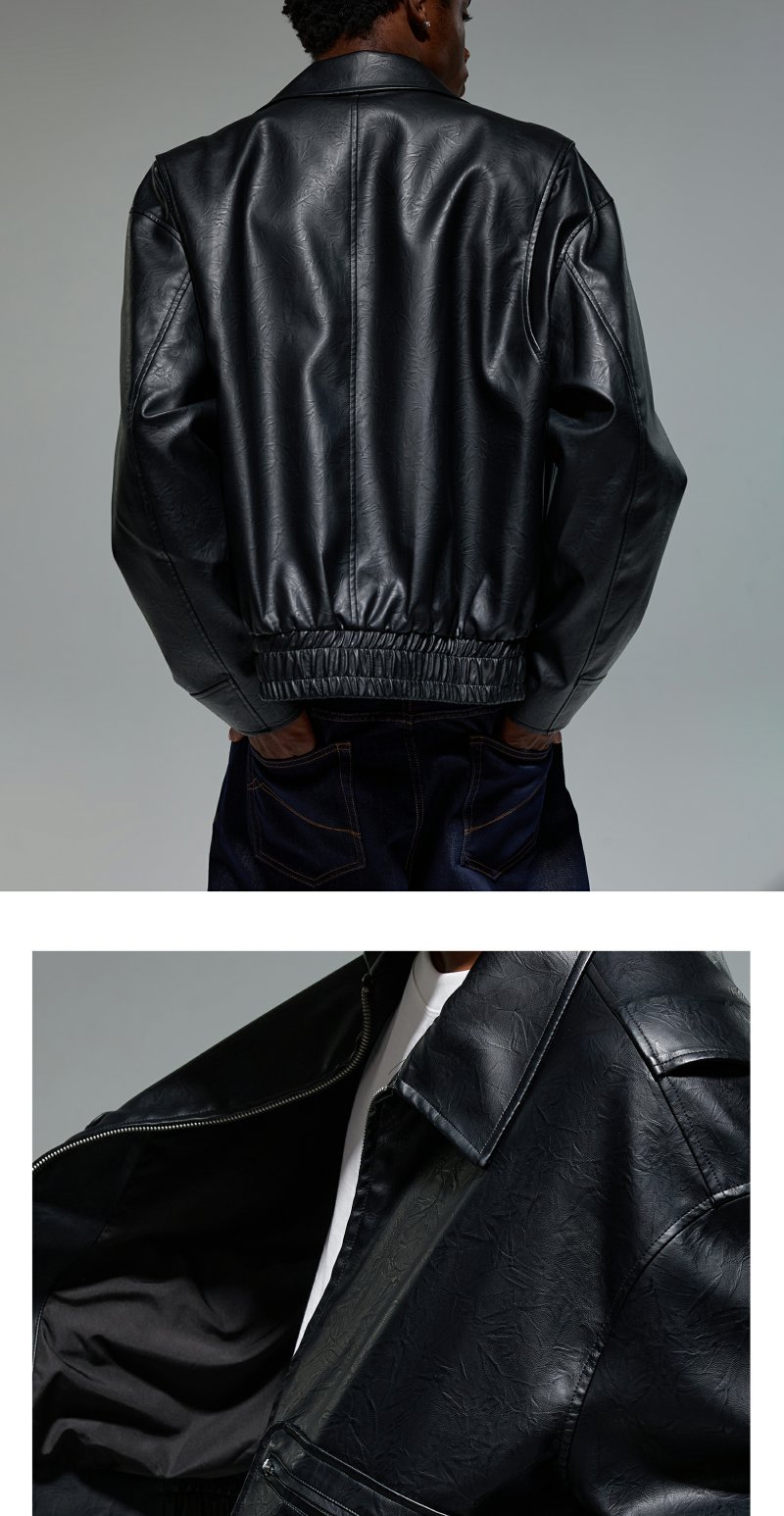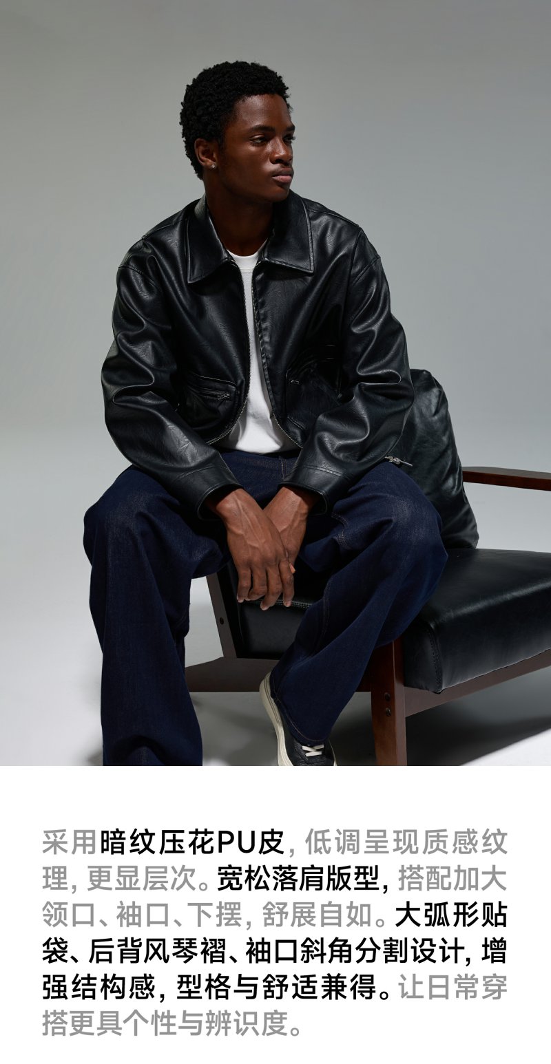 CHINISM赤尘 暗纹印花pu皮夹克男春秋美式机车皮衣高级感男士外套