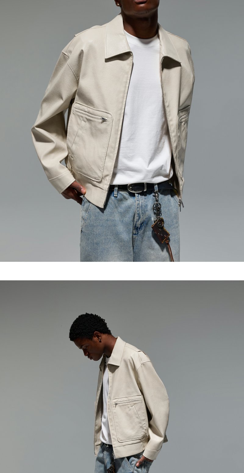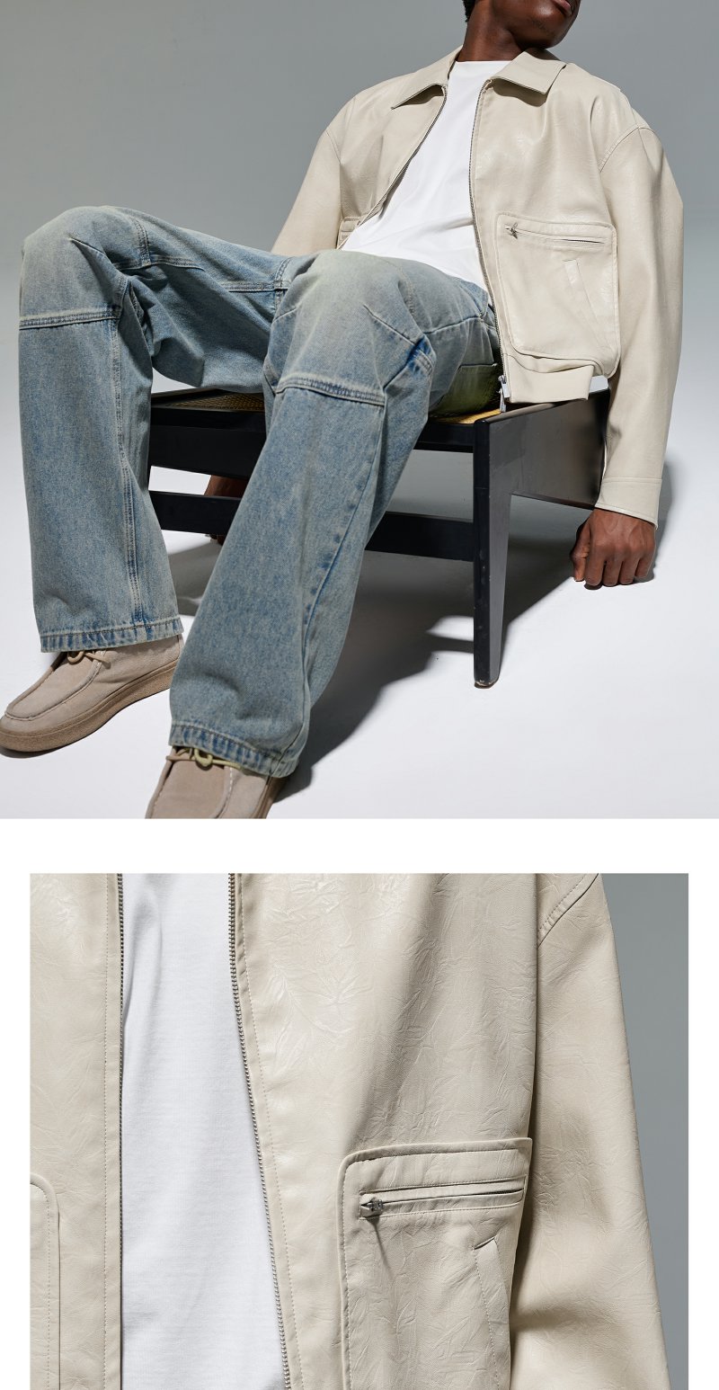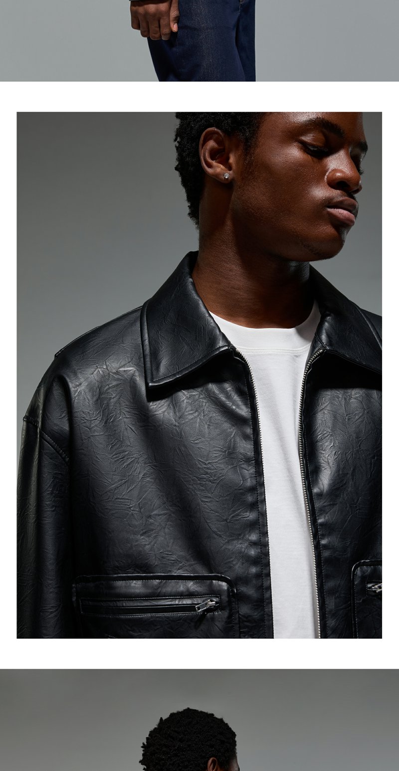 CHINISM赤尘 暗纹印花pu皮夹克男春秋美式机车皮衣高级感男士外套