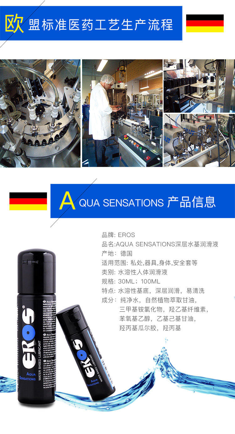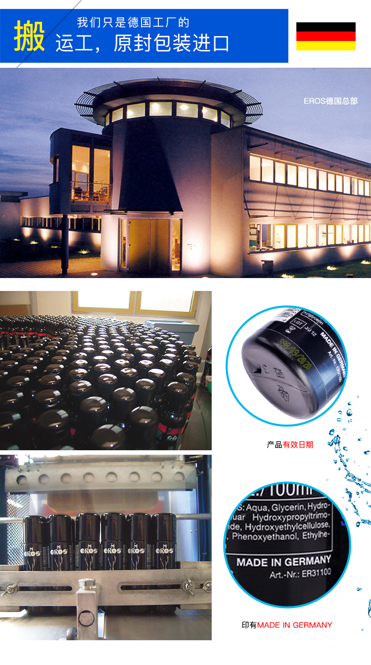 德国原装Eros 深层水基润滑液 双效锁水配方 加倍滋润