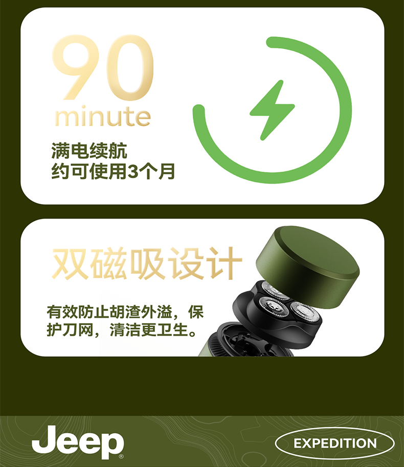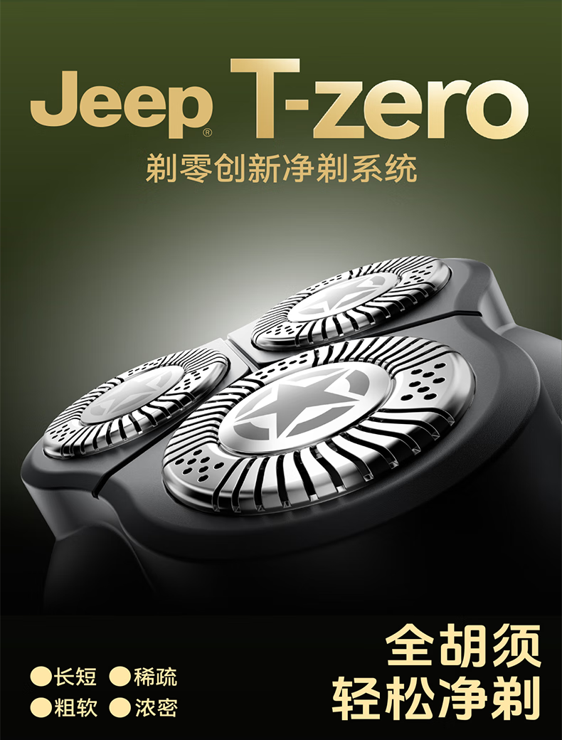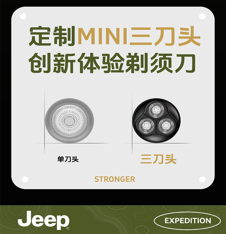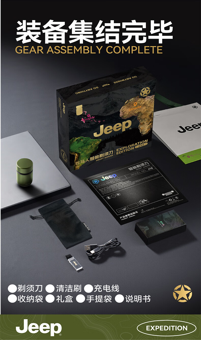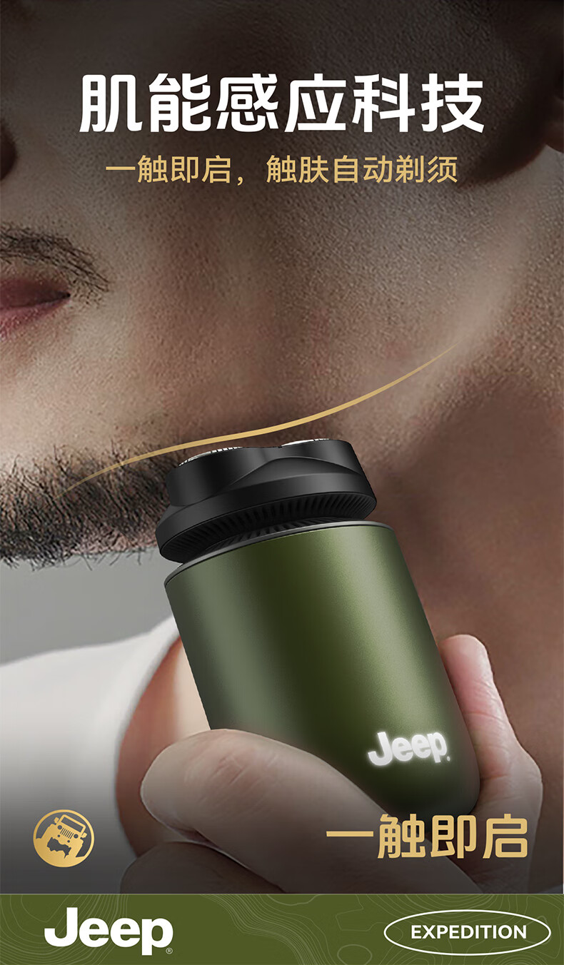 JEEP美国进口牧马人智能剃须刀便携式 男士电动刮胡刀mini三刀头旋转式全身水洗感应剃须