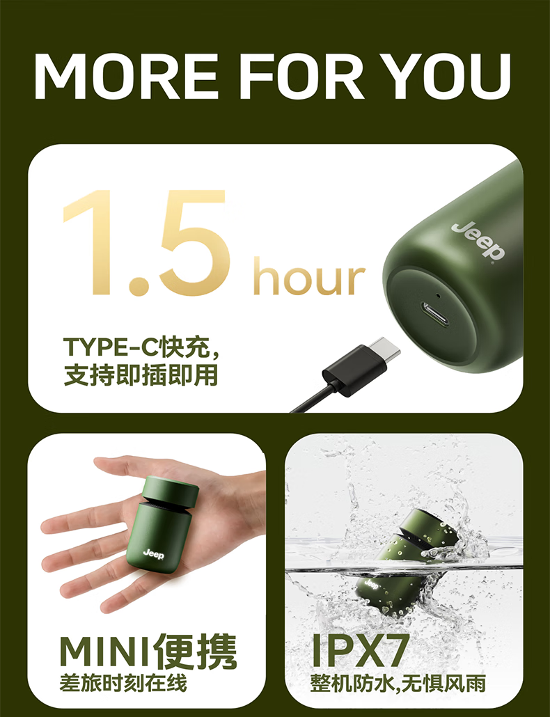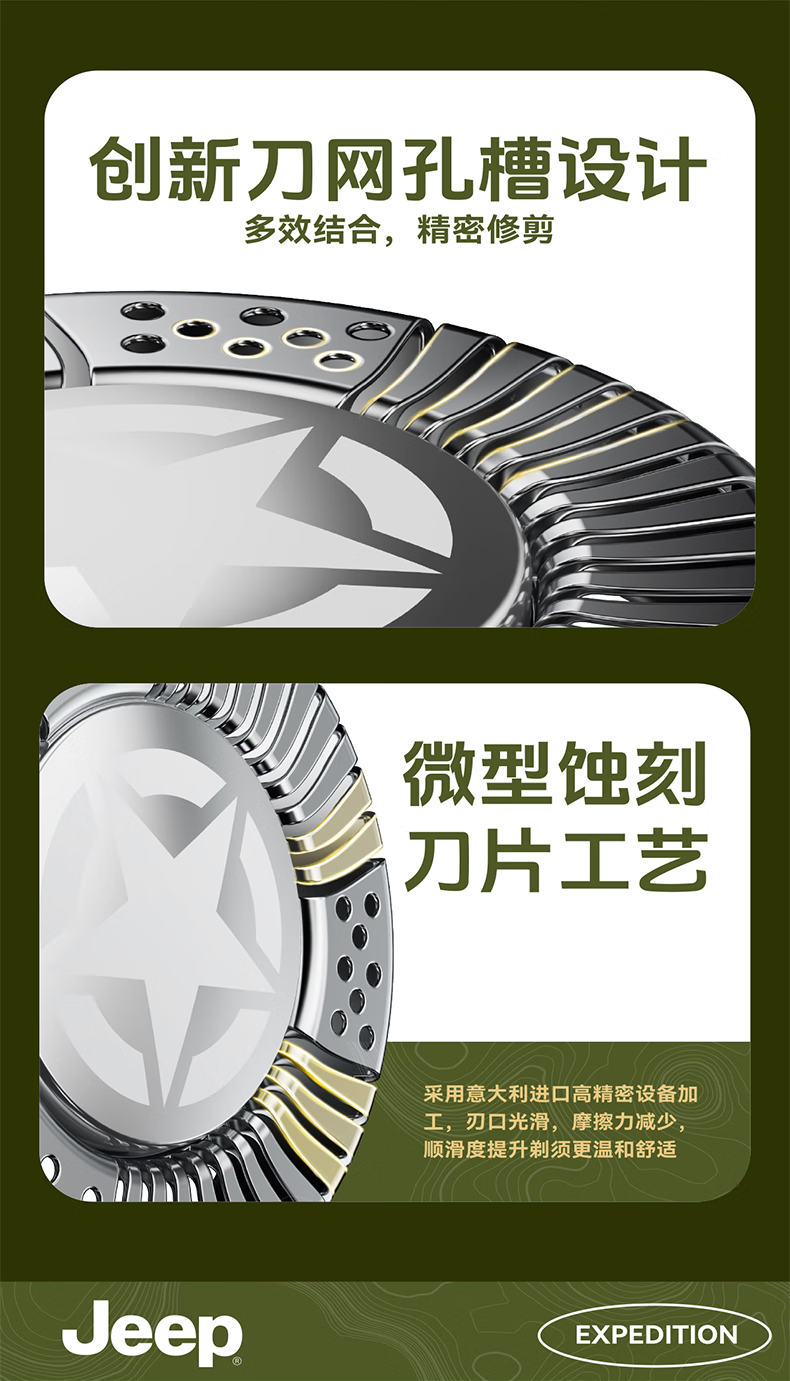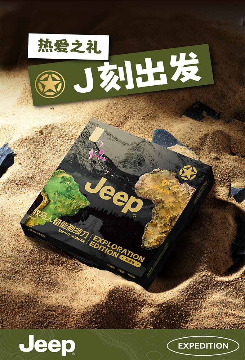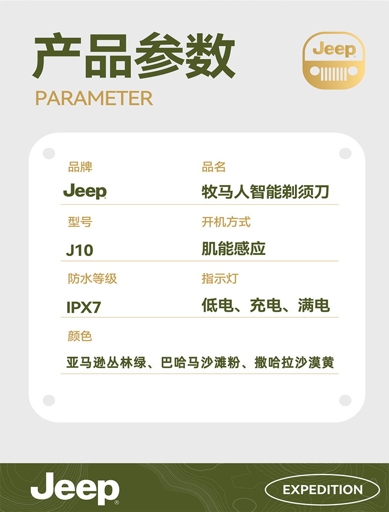 JEEP美国进口牧马人智能剃须刀便携式 男士电动刮胡刀mini三刀头旋转式全身水洗感应剃须