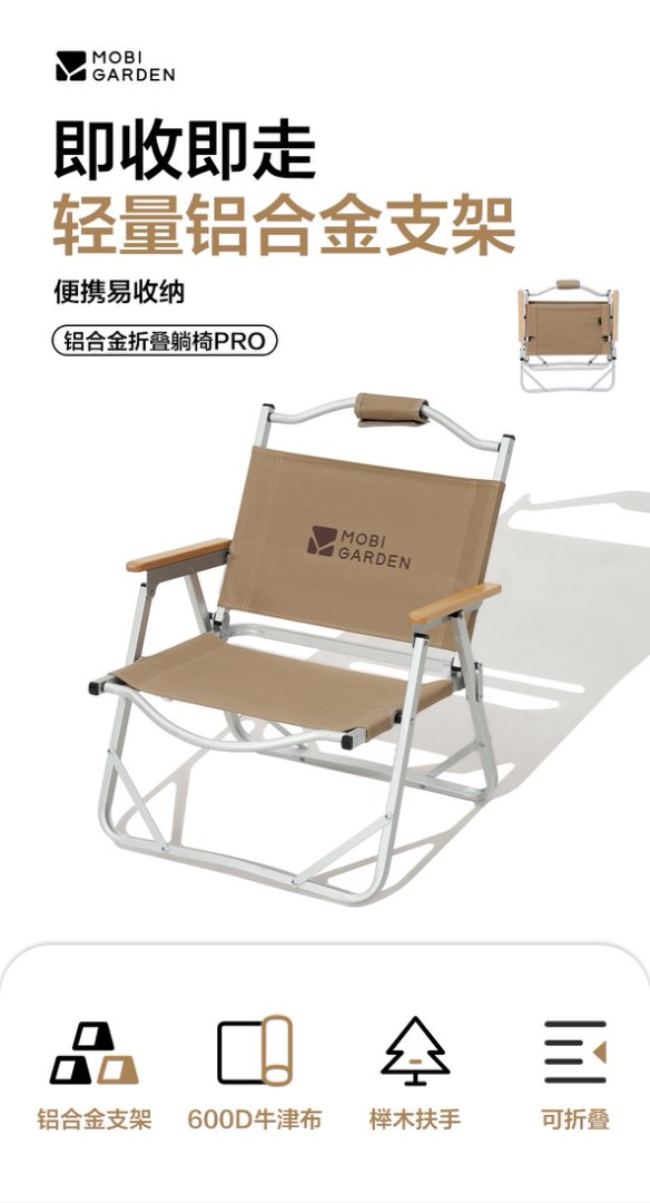 牧高笛(MOBIGARDEN) 山川铝合金折叠低躺椅pro