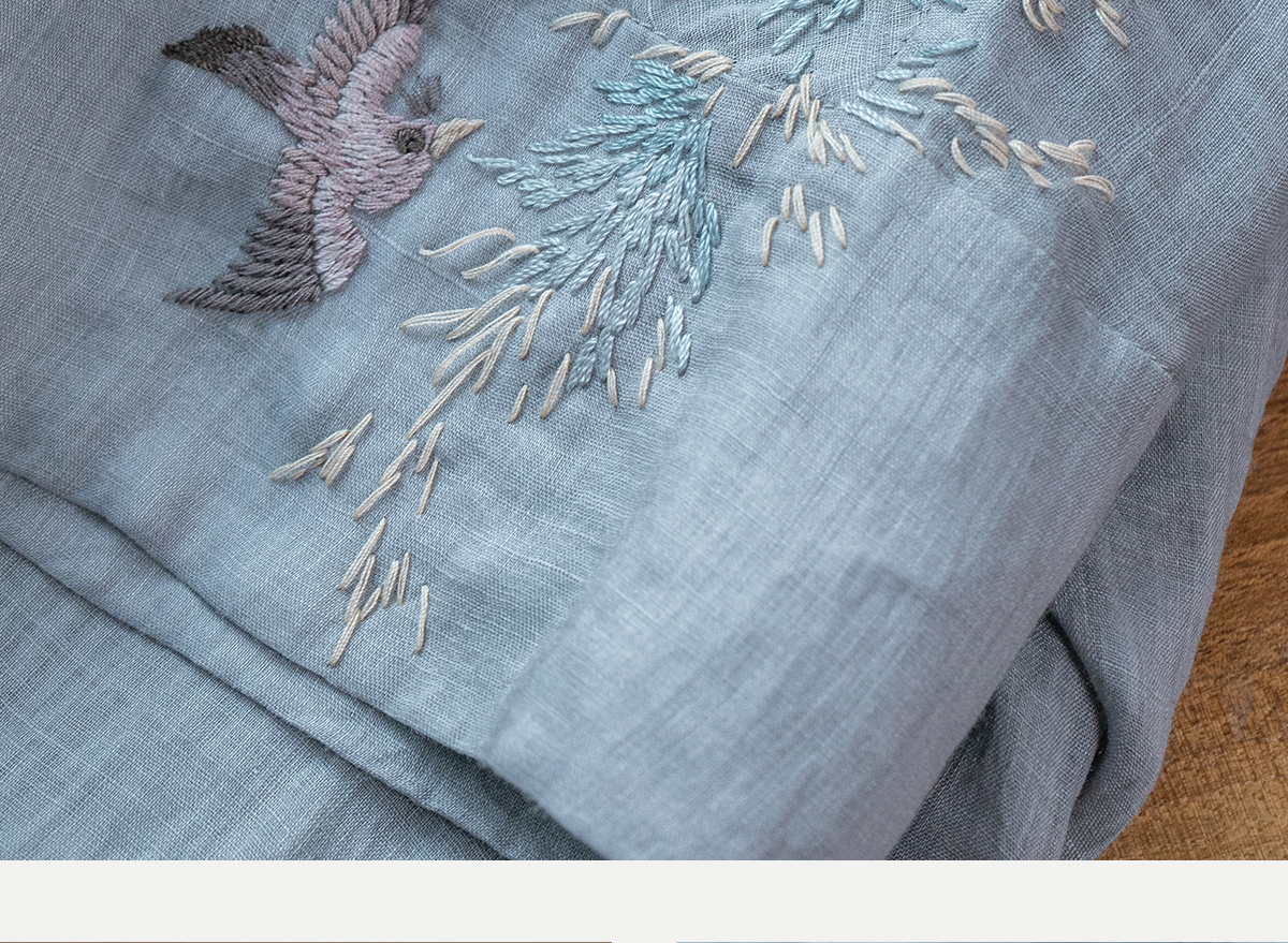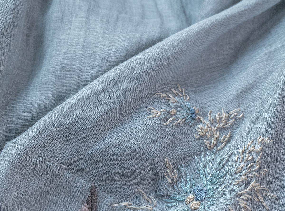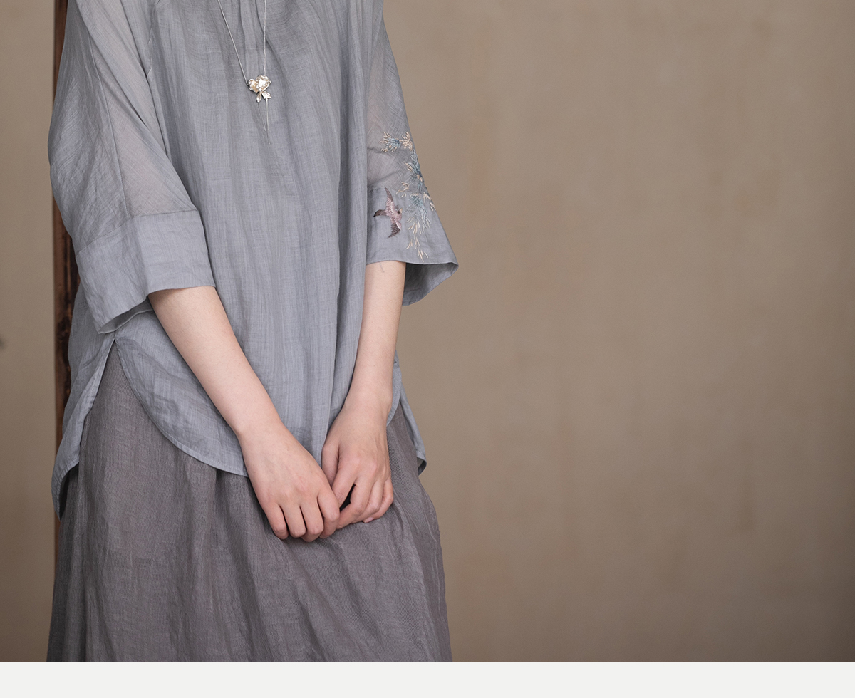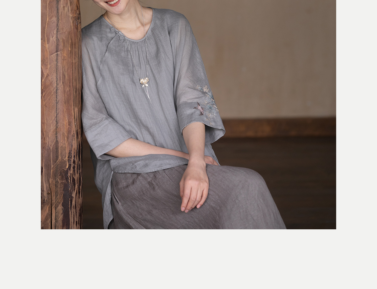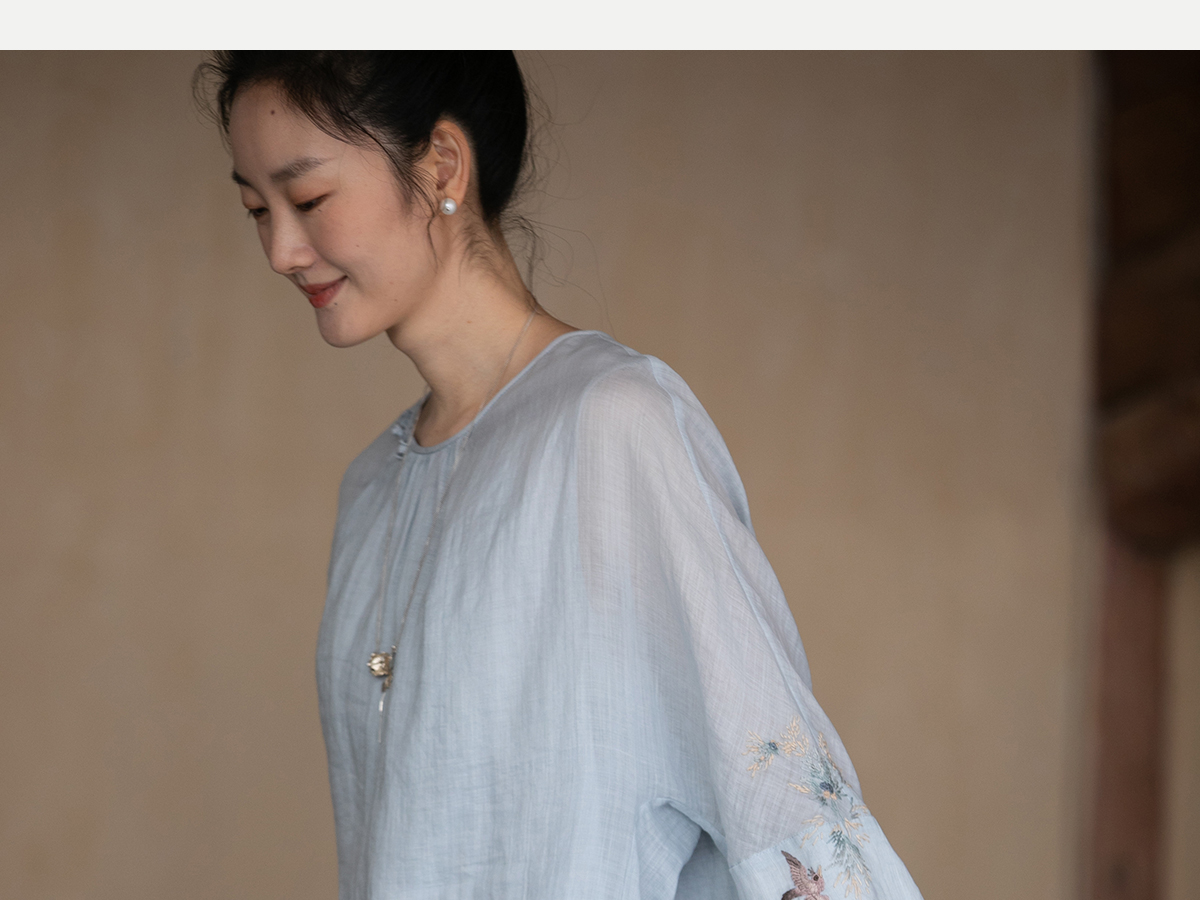 牧衣游原创 手工刺绣苎麻套头衫新品轻薄清凉文艺百搭上衣 若沐