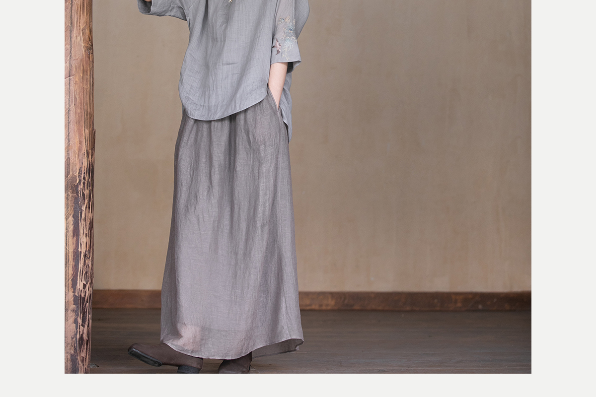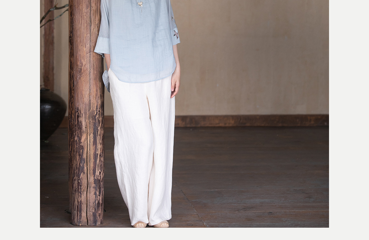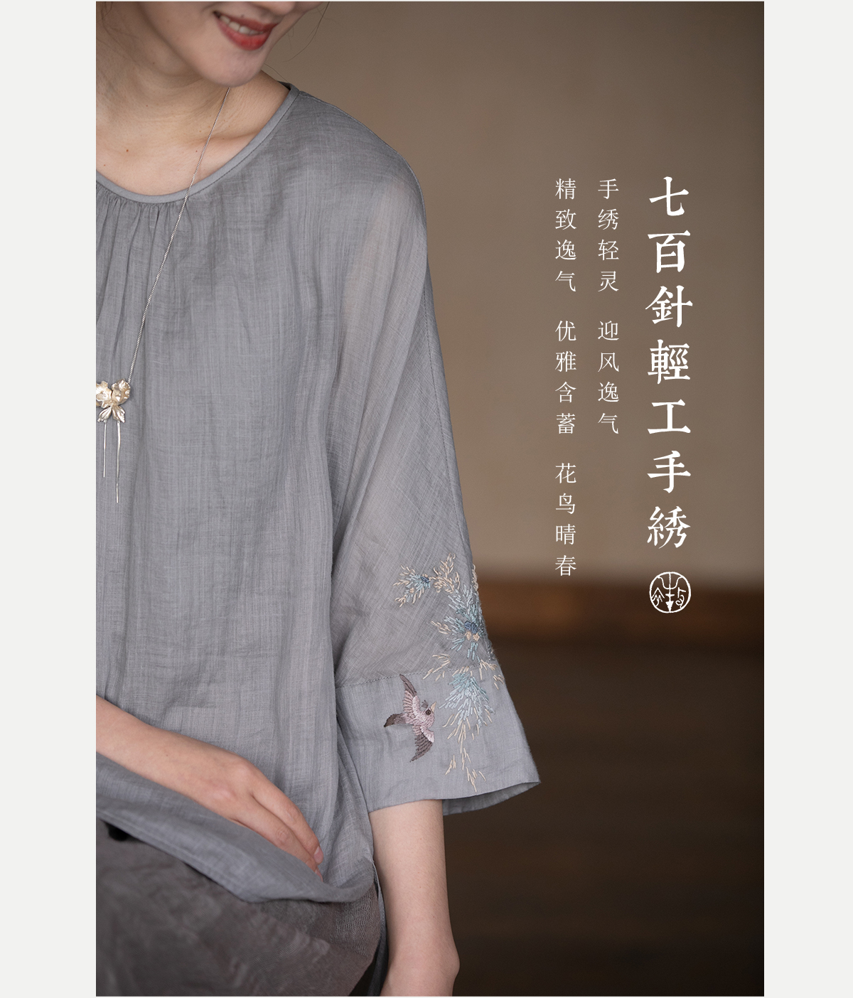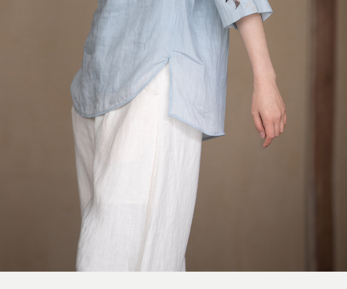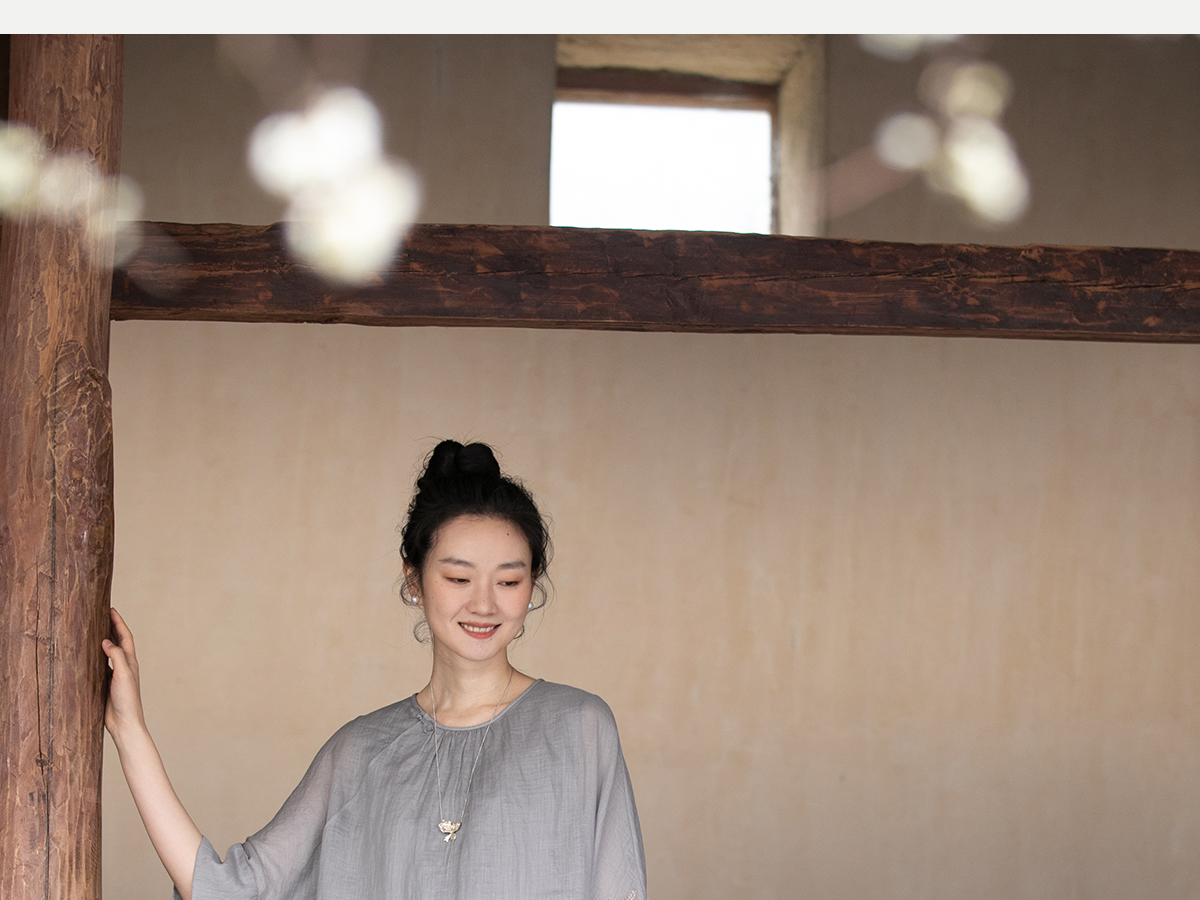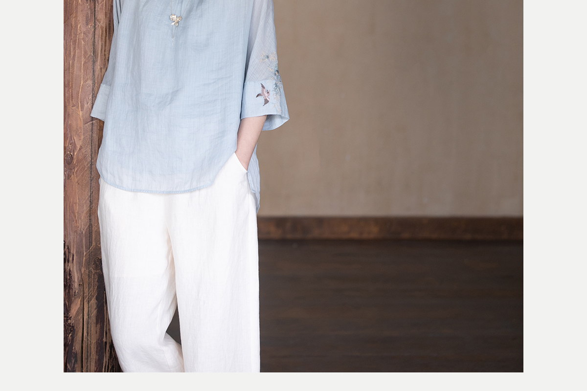 牧衣游原创 手工刺绣苎麻套头衫新品轻薄清凉文艺百搭上衣 若沐