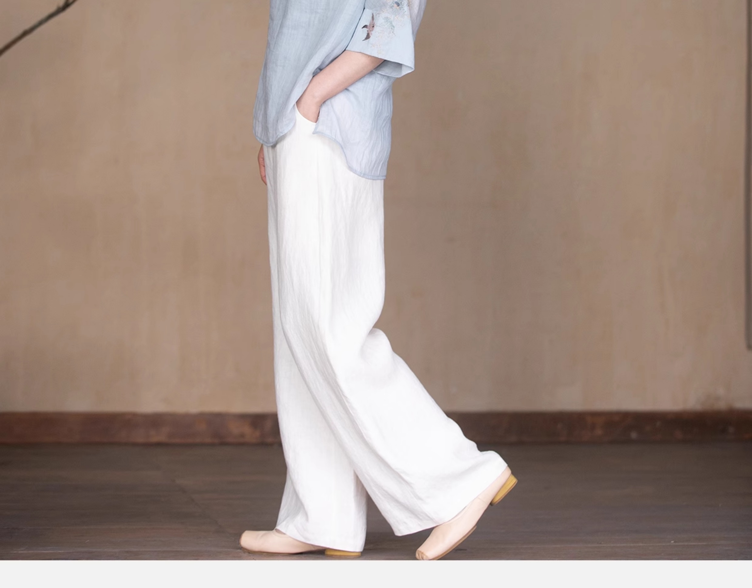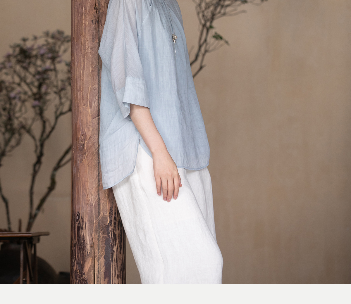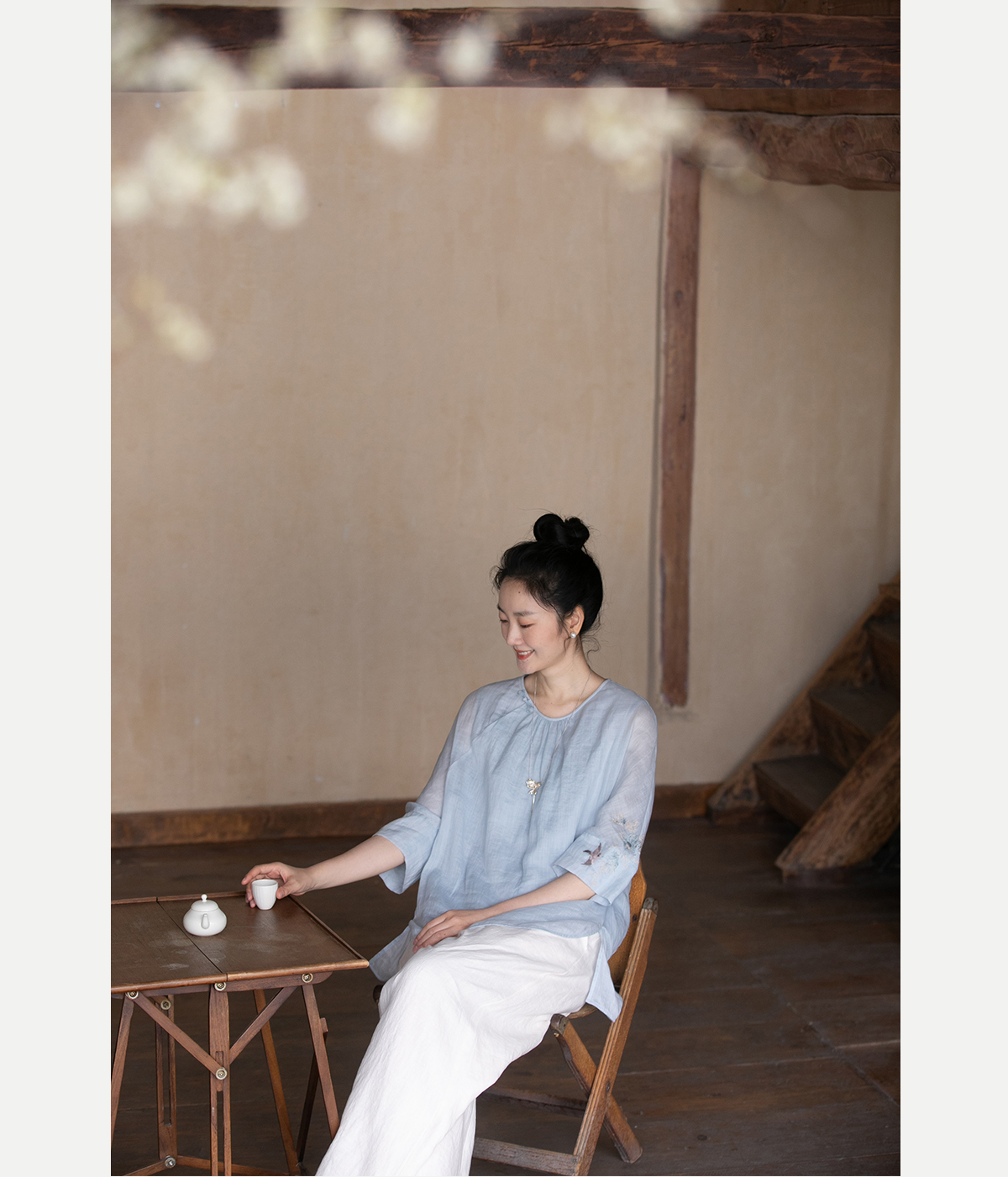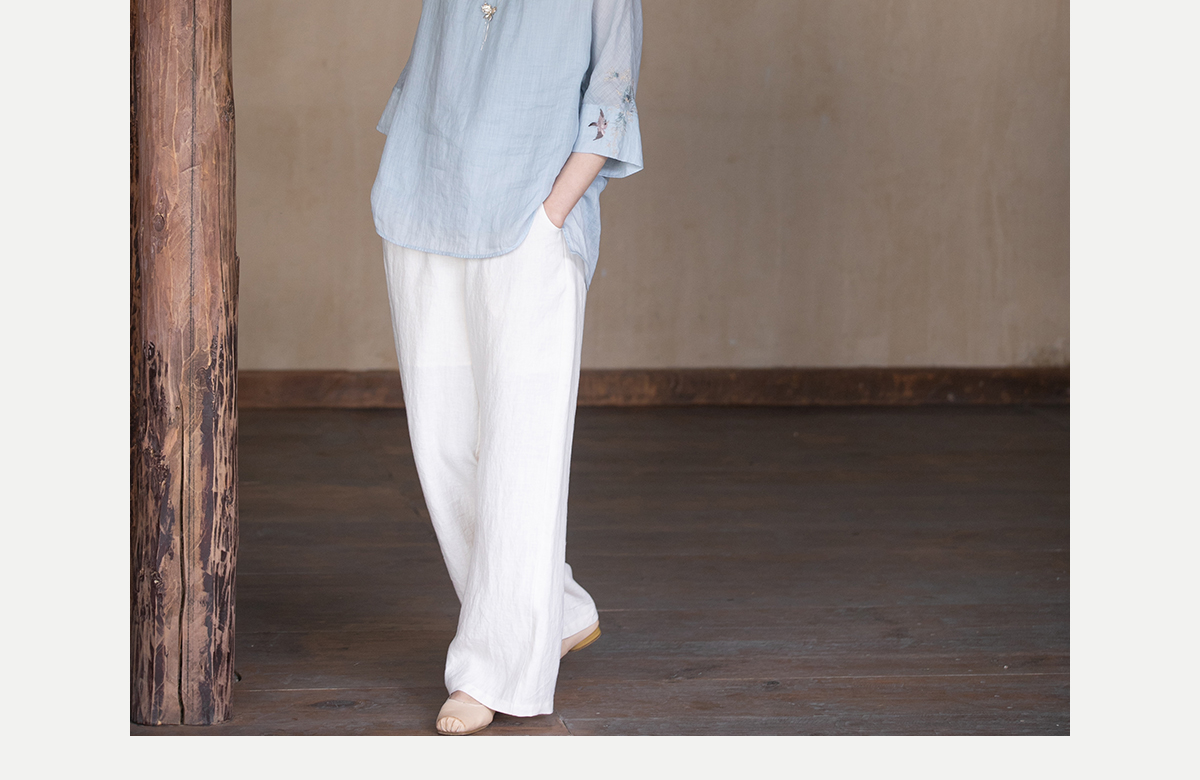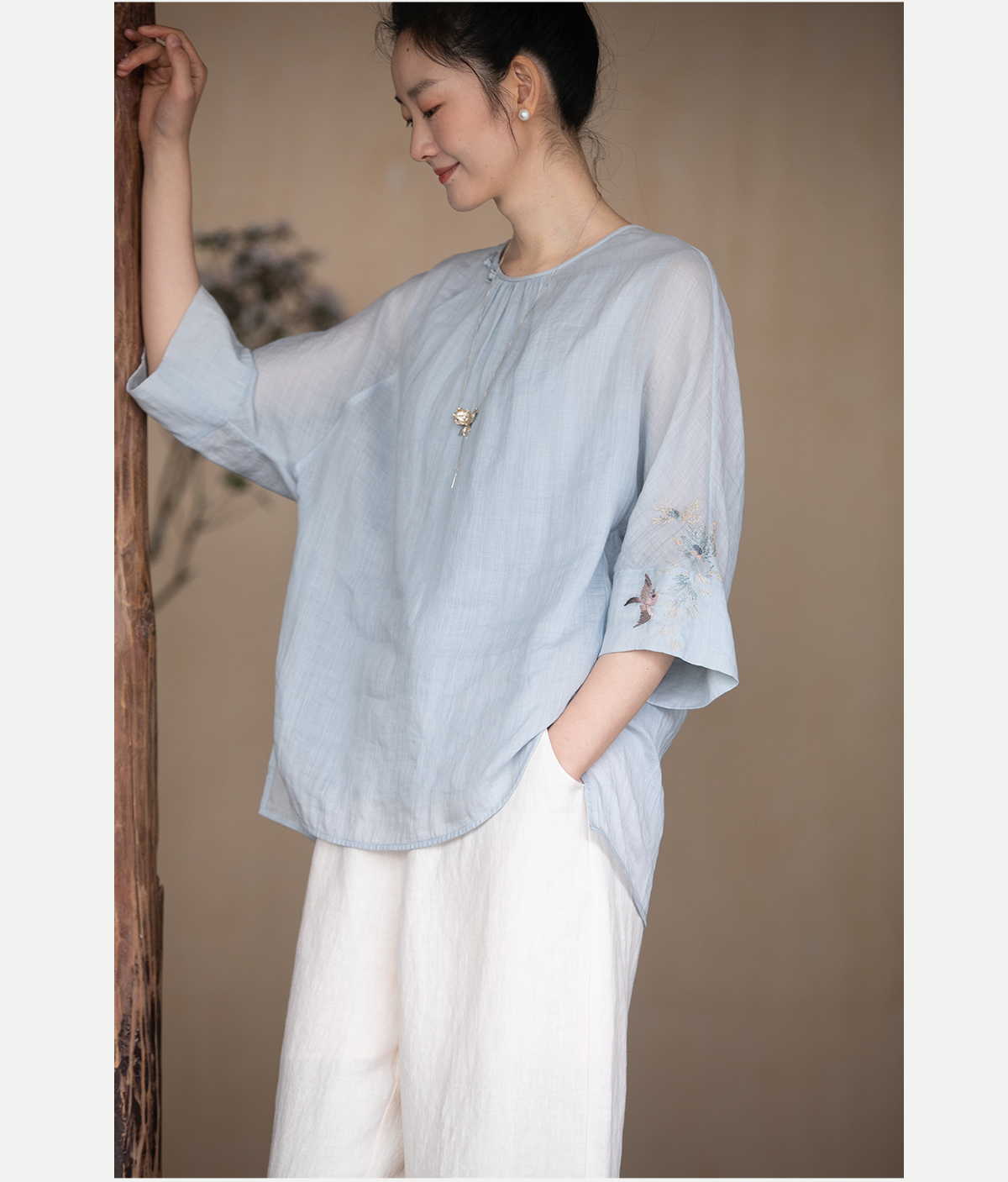 牧衣游原创 手工刺绣苎麻套头衫新品轻薄清凉文艺百搭上衣 若沐