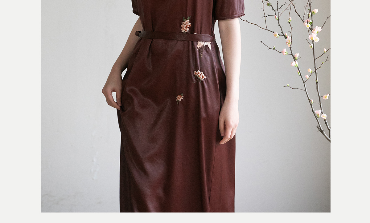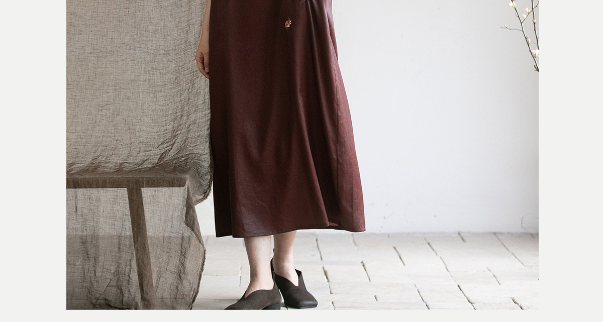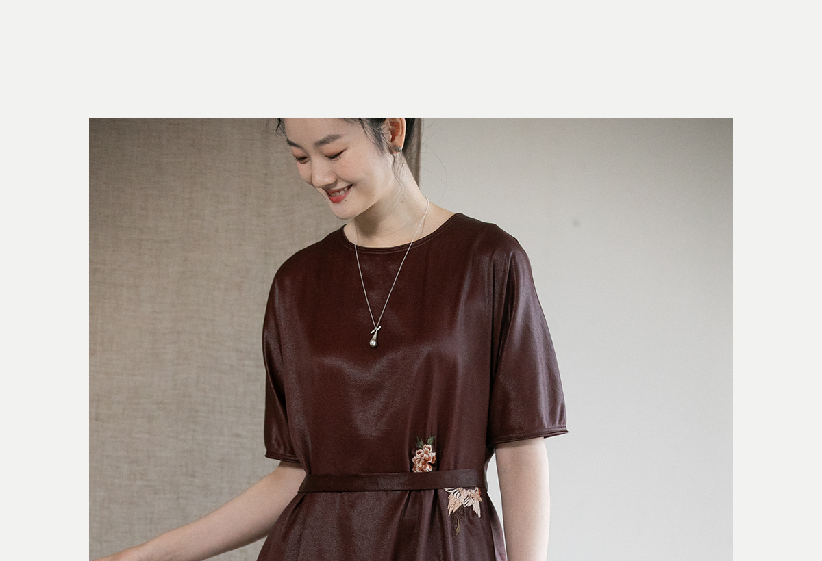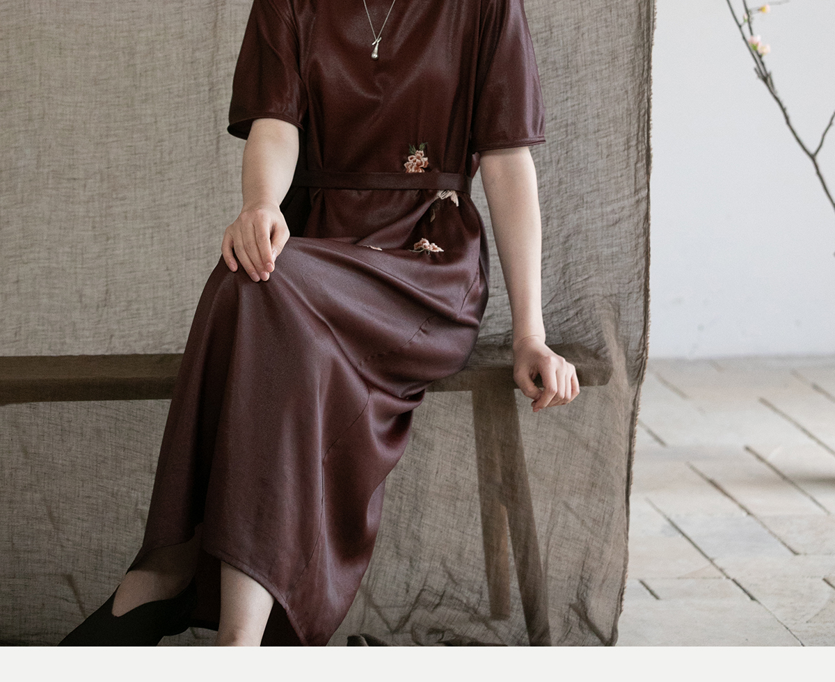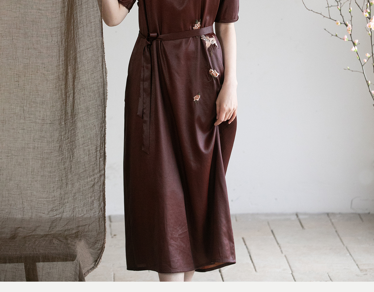 牧衣游原创精工手绣醇正薯莨红云纱连衣裙宽松复古气质长裙 灼风