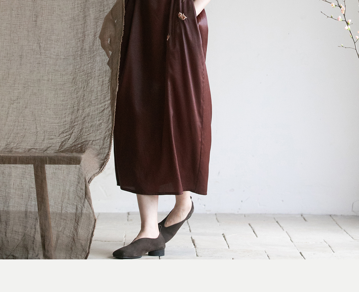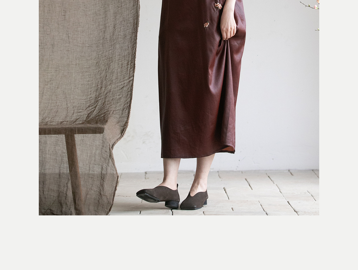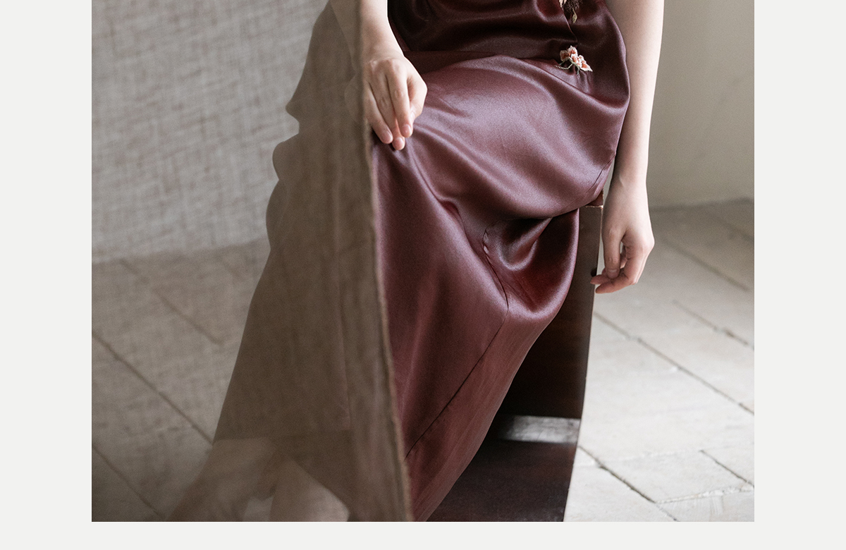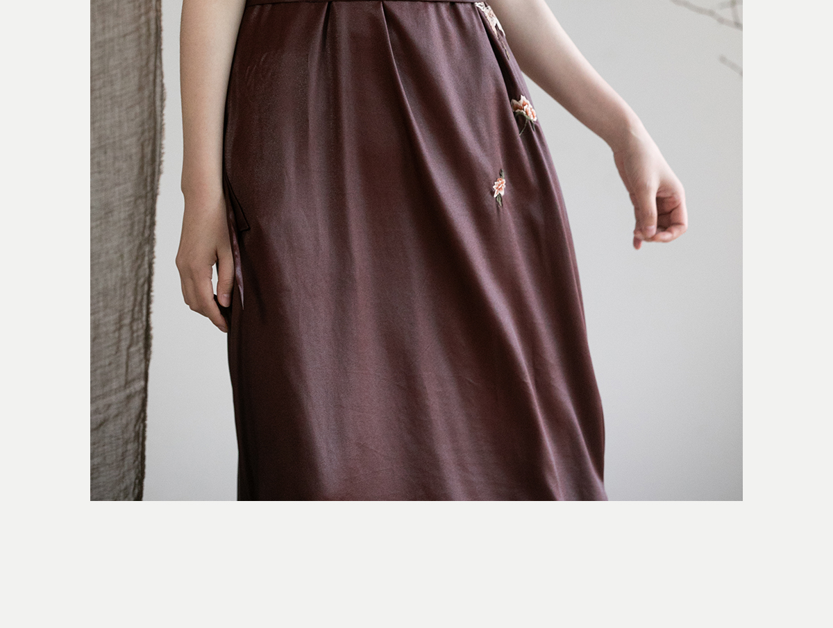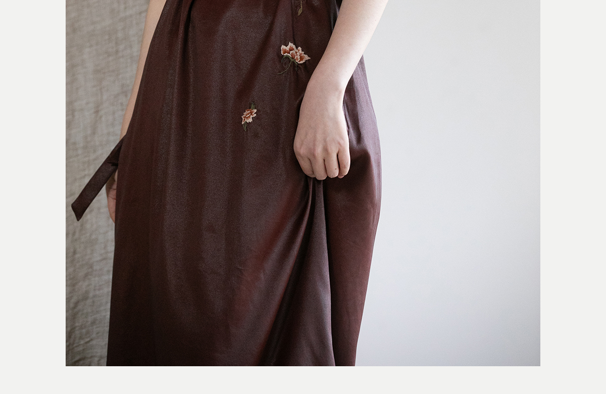 牧衣游原创精工手绣醇正薯莨红云纱连衣裙宽松复古气质长裙 灼风