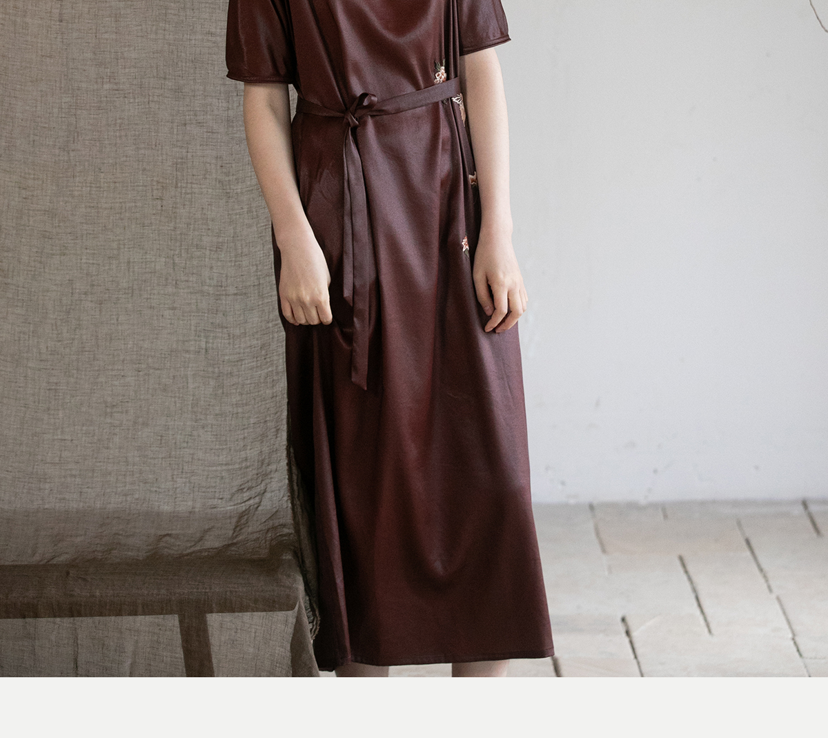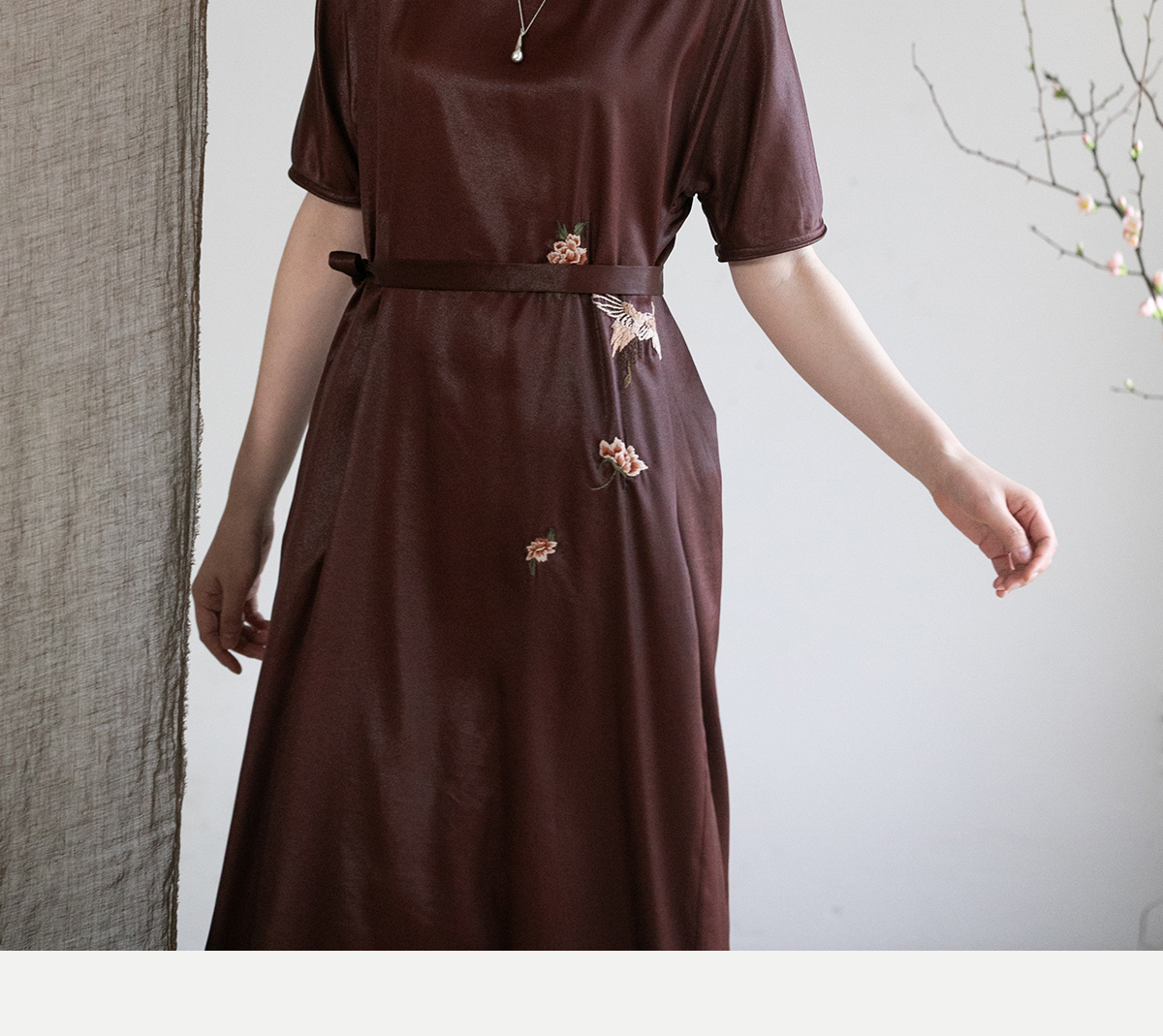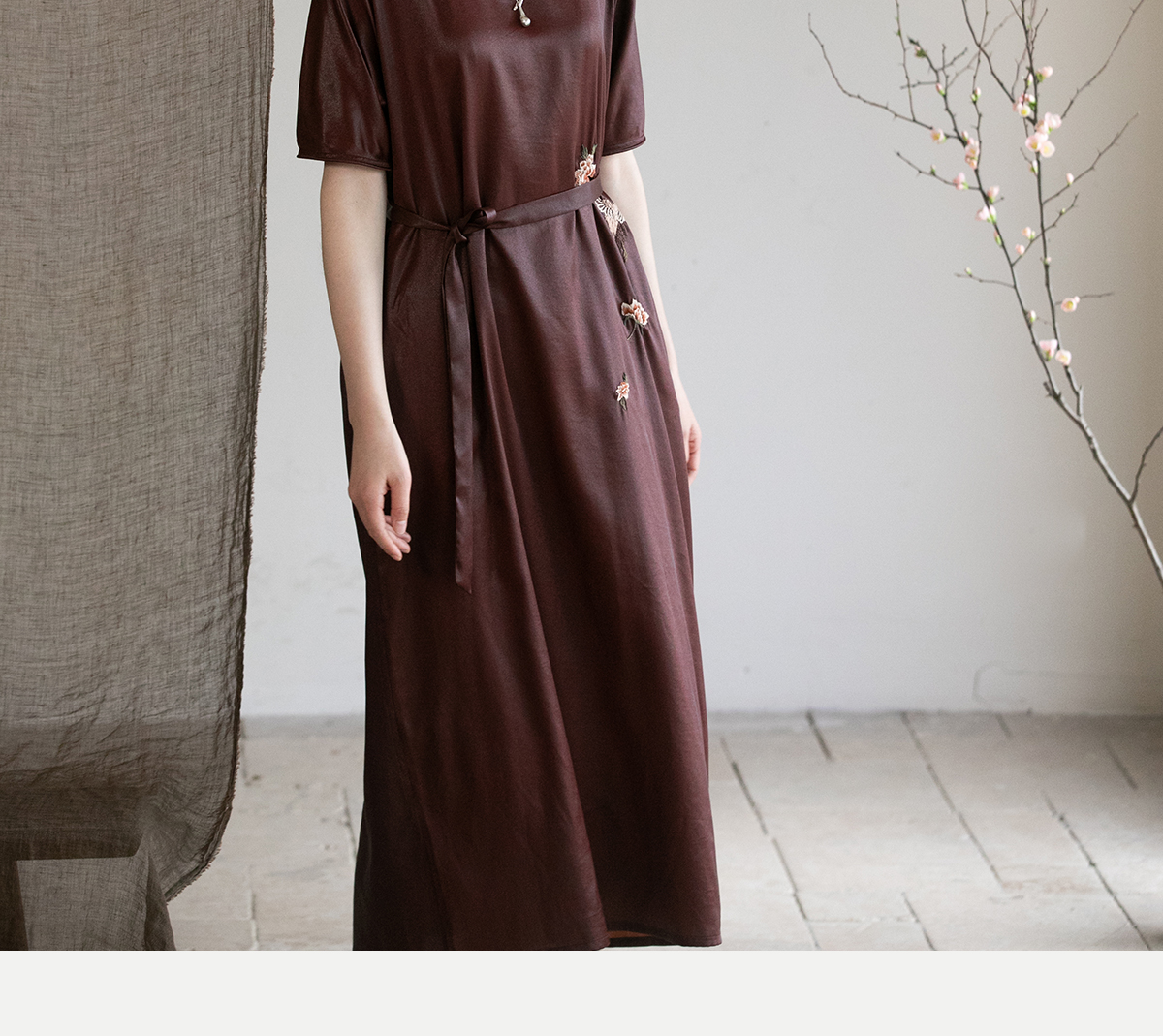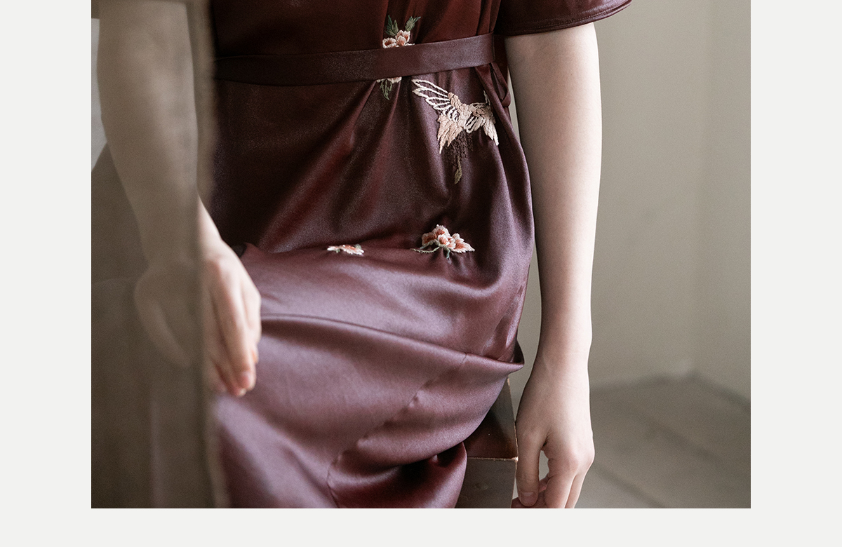 牧衣游原创精工手绣醇正薯莨红云纱连衣裙宽松复古气质长裙 灼风