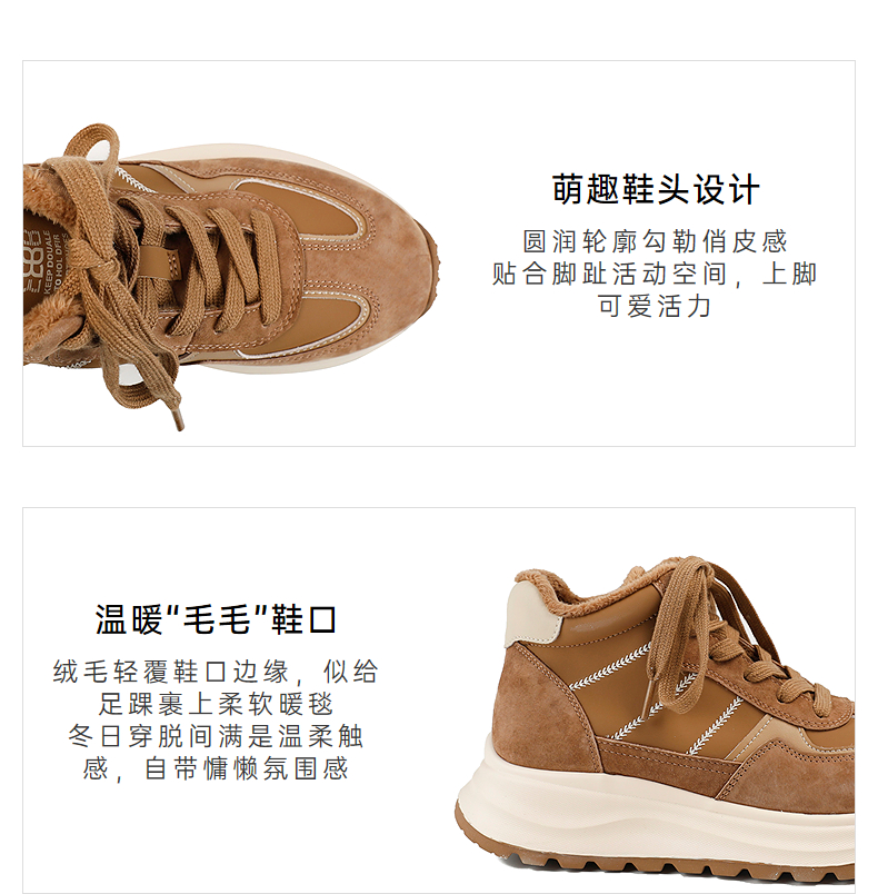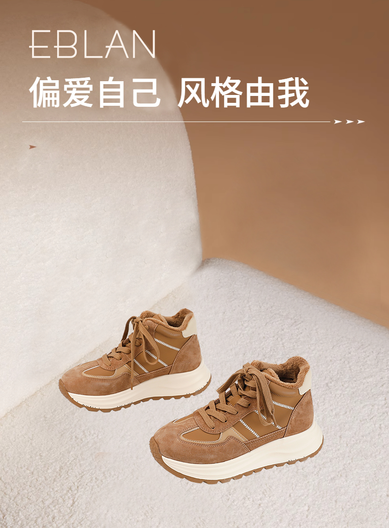 伊伴冬季美拉德色系复古“毛毛”鞋口德训鞋冬靴B25655829