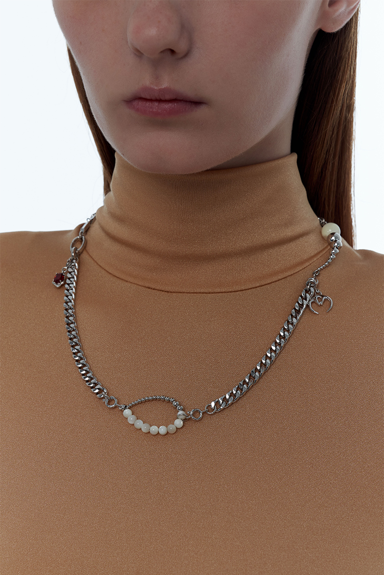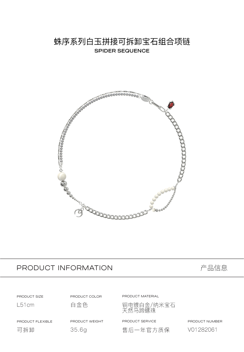 KVK2021新款白玉拼接可拆卸宝石组合项链女生配饰原创设计礼物
