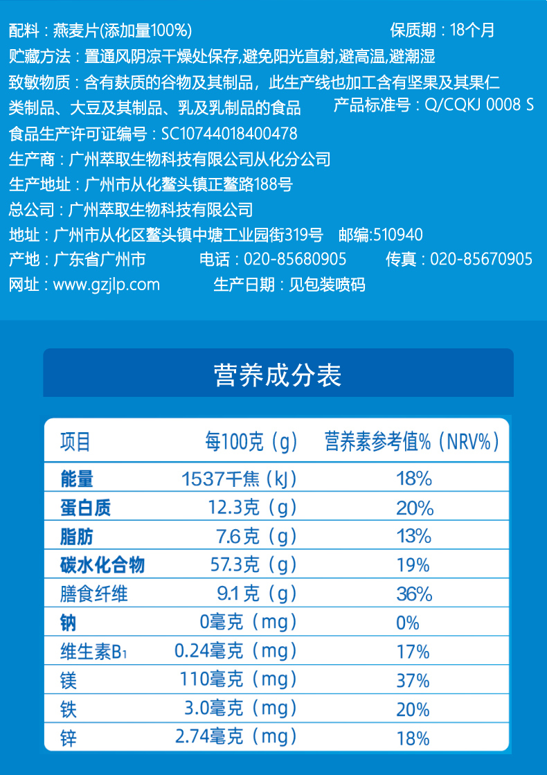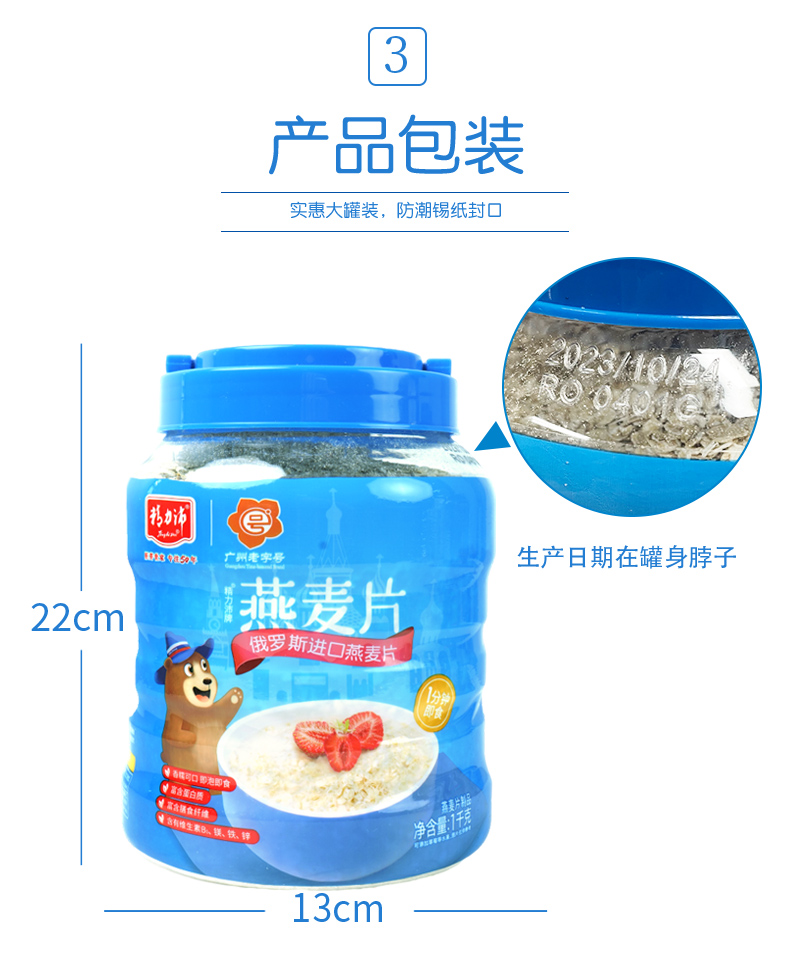 【广州帮扶】精力沛丨燕麦片(俄罗斯进口燕麦片)1kg/罐