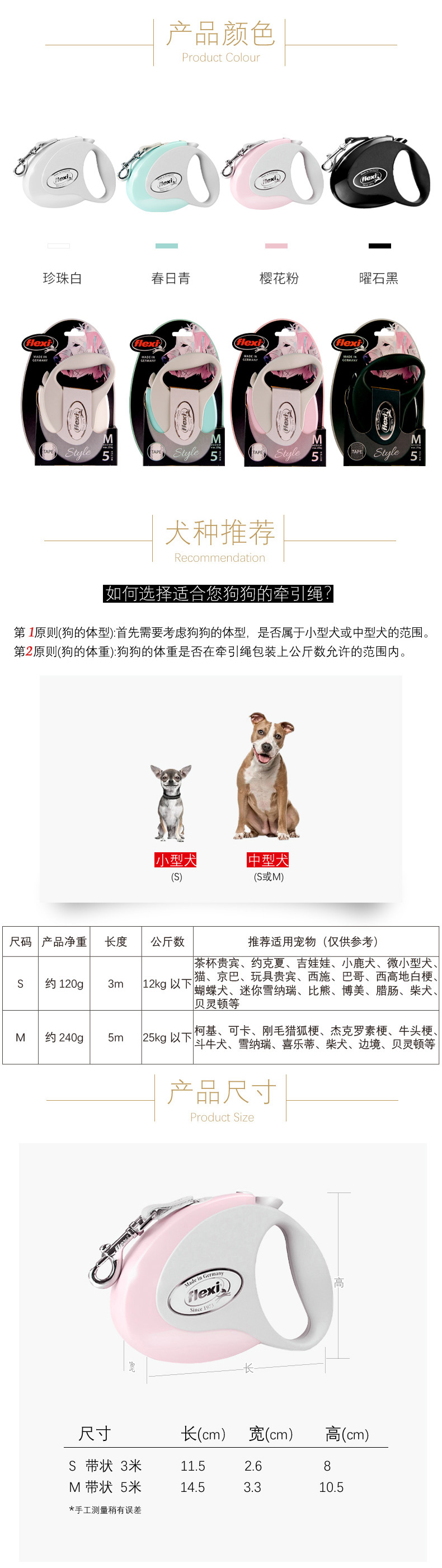 新品爆款!Flexi福莱希 德国进口 自动伸缩牵引绳遛狗绳中型小型犬专用
