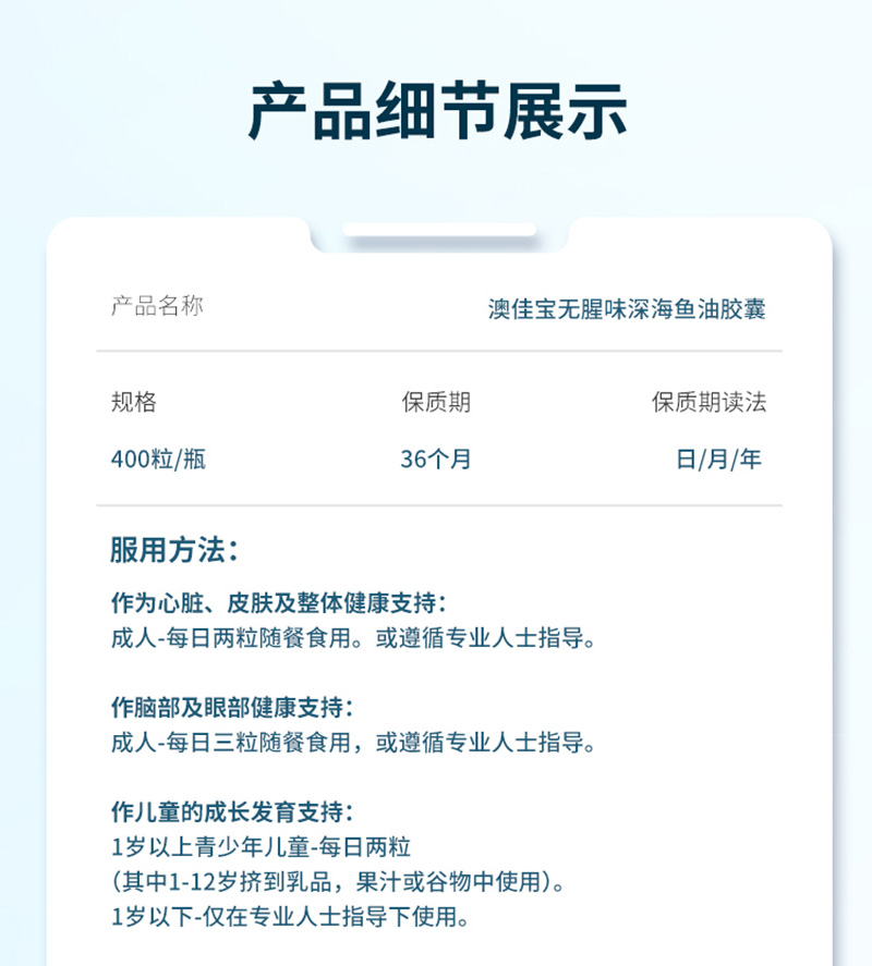 澳佳宝 深海鱼油软胶囊400粒无腥味