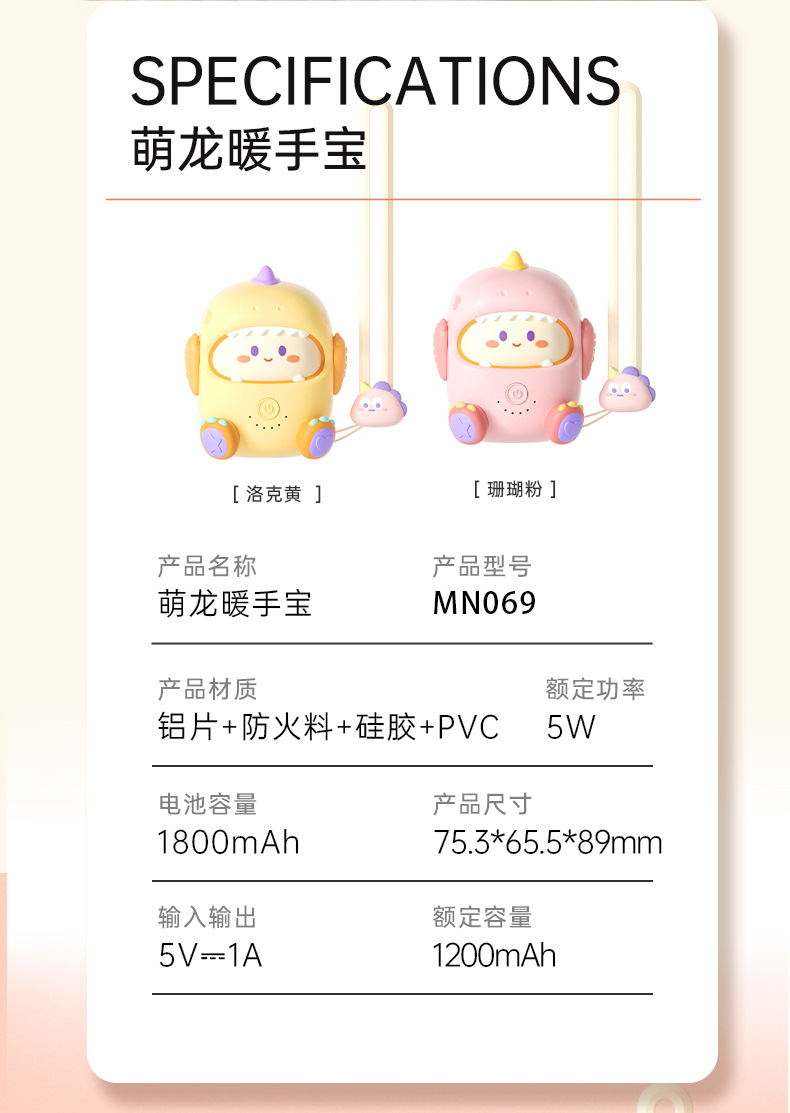 【是萌宠暖手宝!也是充电宝!】萌宠充电宝二合一萌龙暖手宝 随身便携礼物 可充电电加热