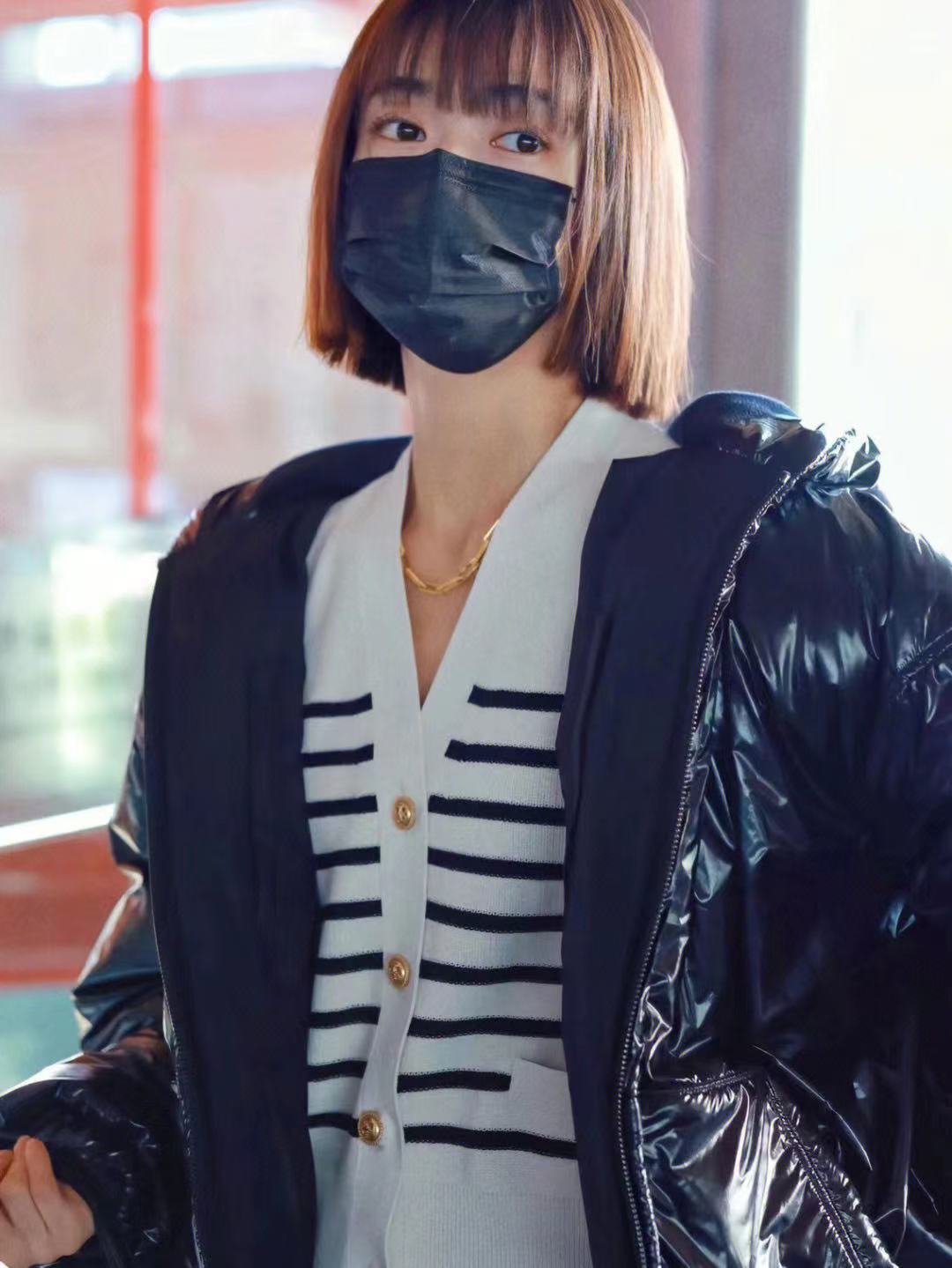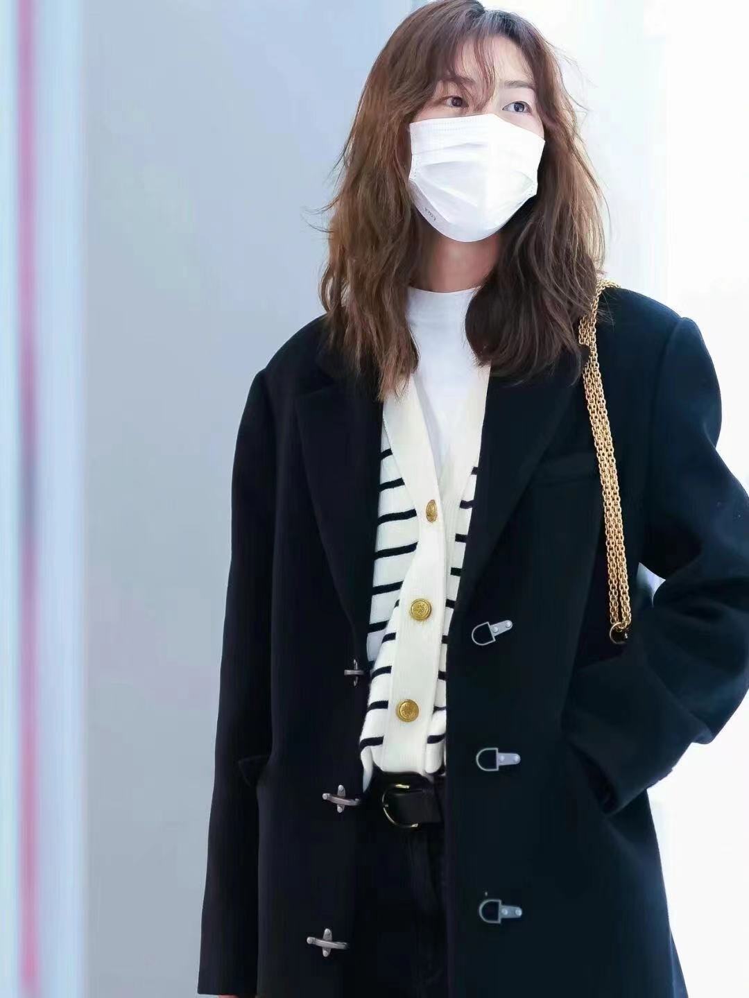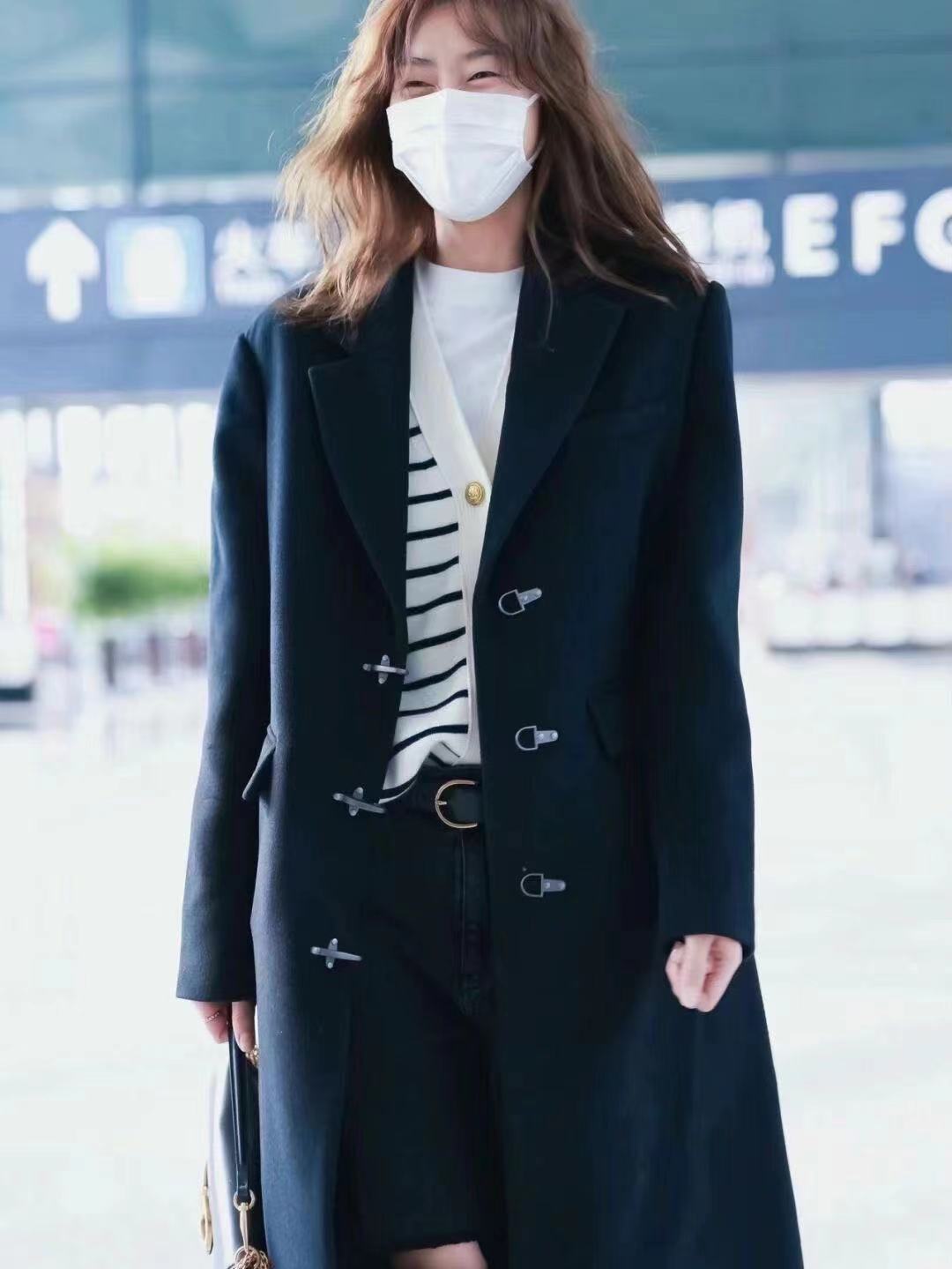 吴谨言身穿Edition水手条纹开衫机场拍摄🤩🤩