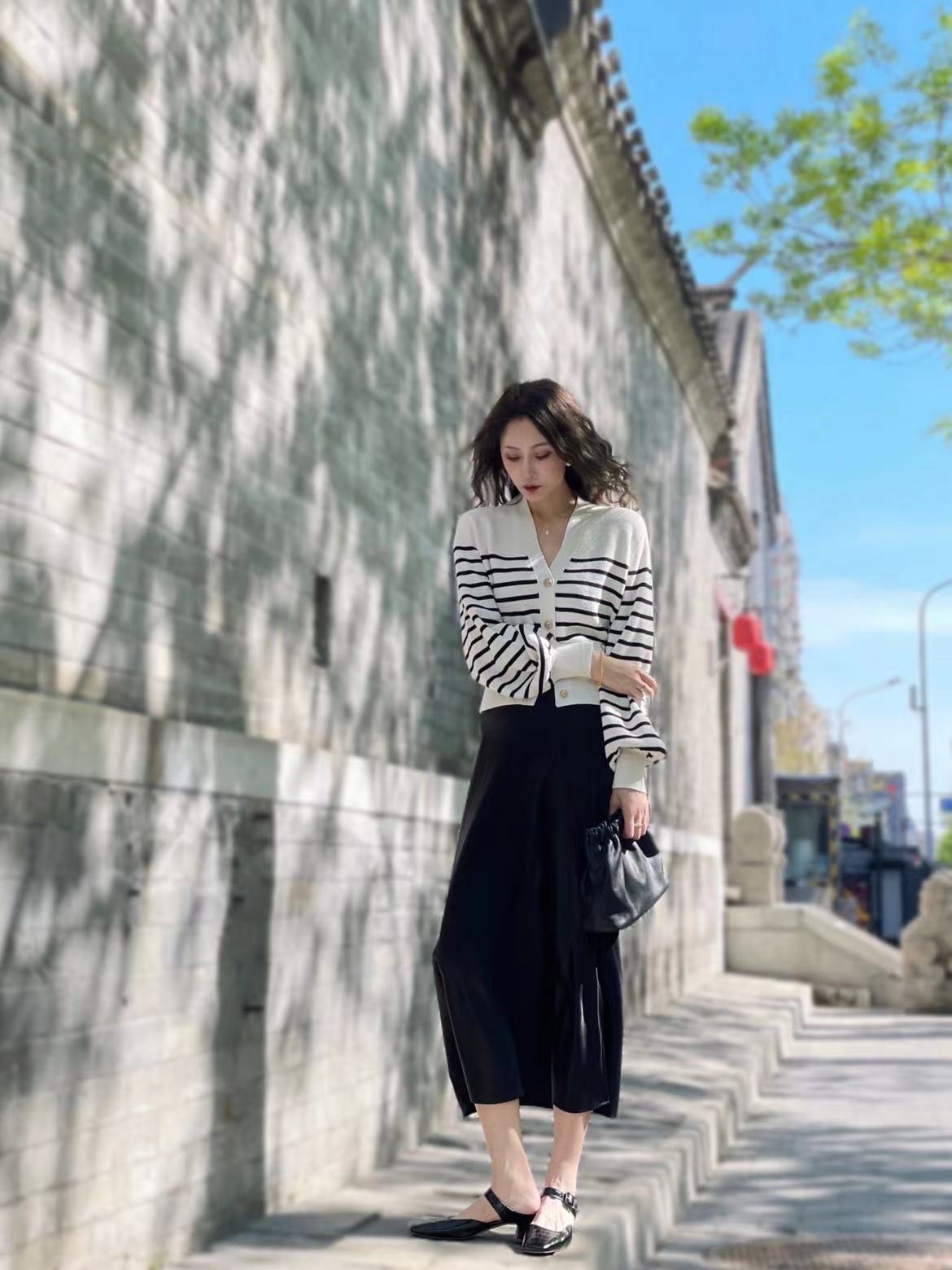 ✅米白色撞色黑色条纹,经典百搭又高级,气质满满~