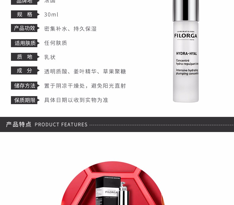 菲洛嘉玻尿酸保湿精华富含透明质酸,是一款密集保湿精华,深入肌底,持久保湿。