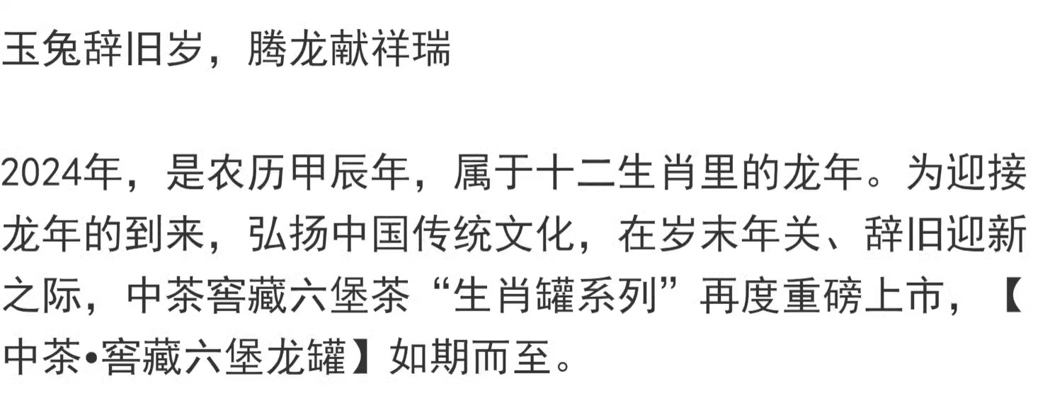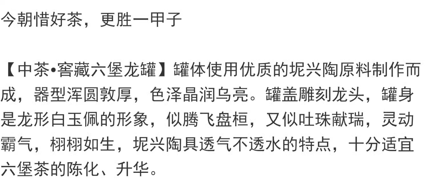中粮-中茶 2024年中茶广西梧州六堡茶窖藏六堡茶龙罐生肖纪念3.5KG散装茶叶