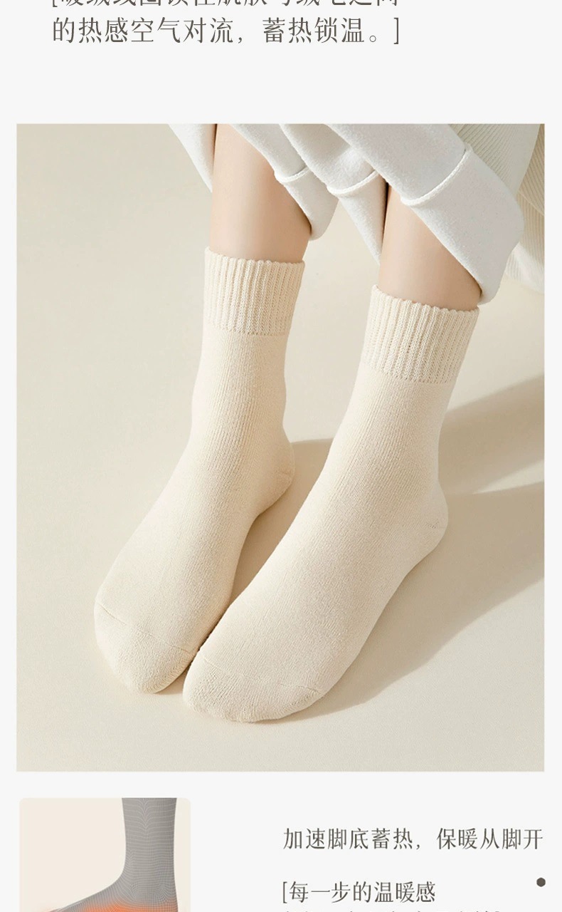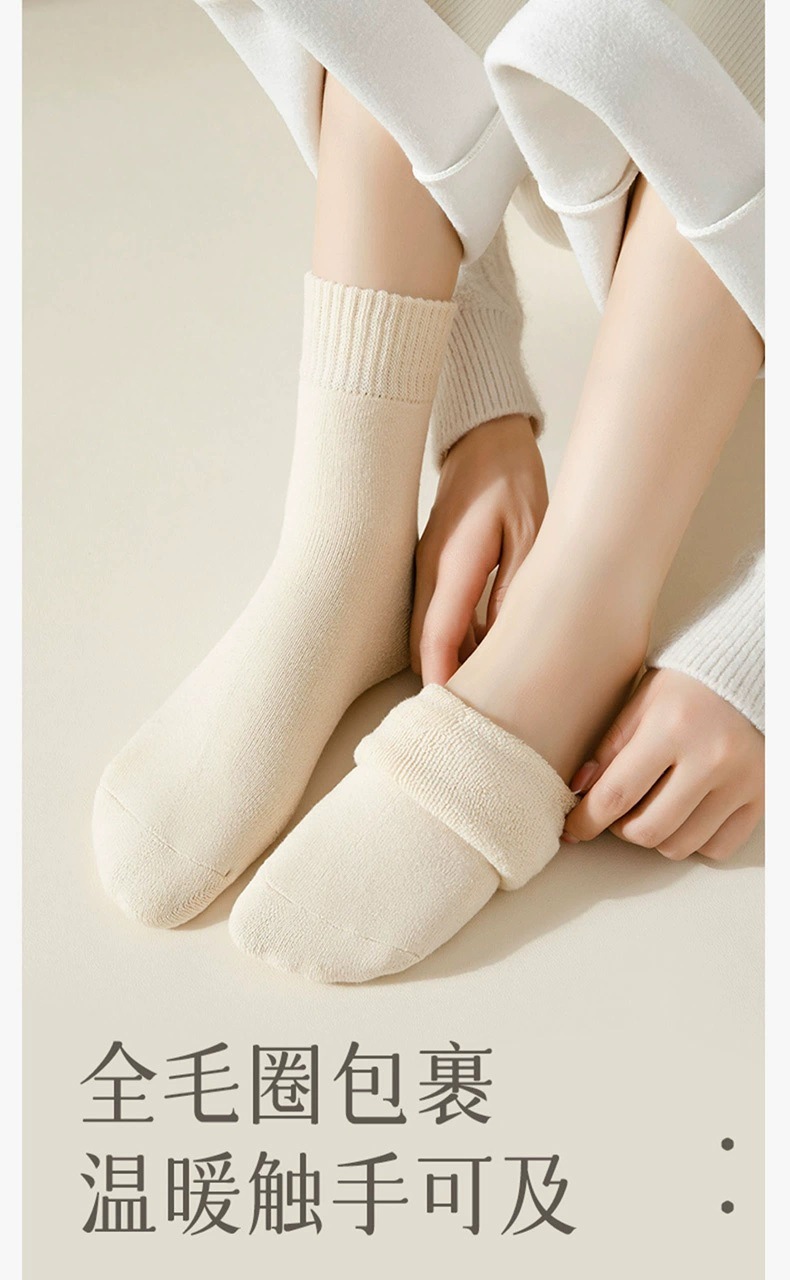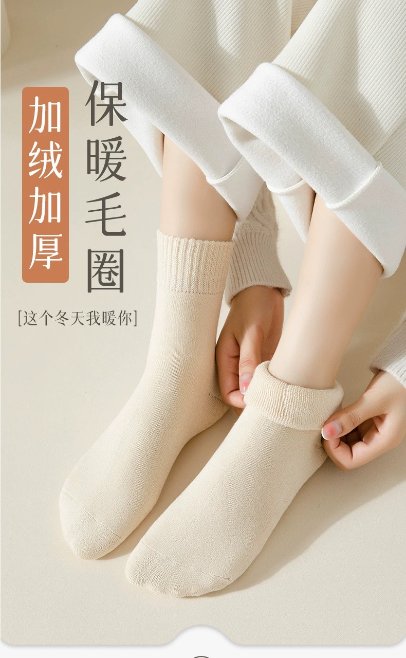 「10双装!木棉鱼毛圈袜」袜子女中筒保暖雪地袜 男女款加绒加厚款保暖 舒适亲肤告别冬天寒冷配饰
