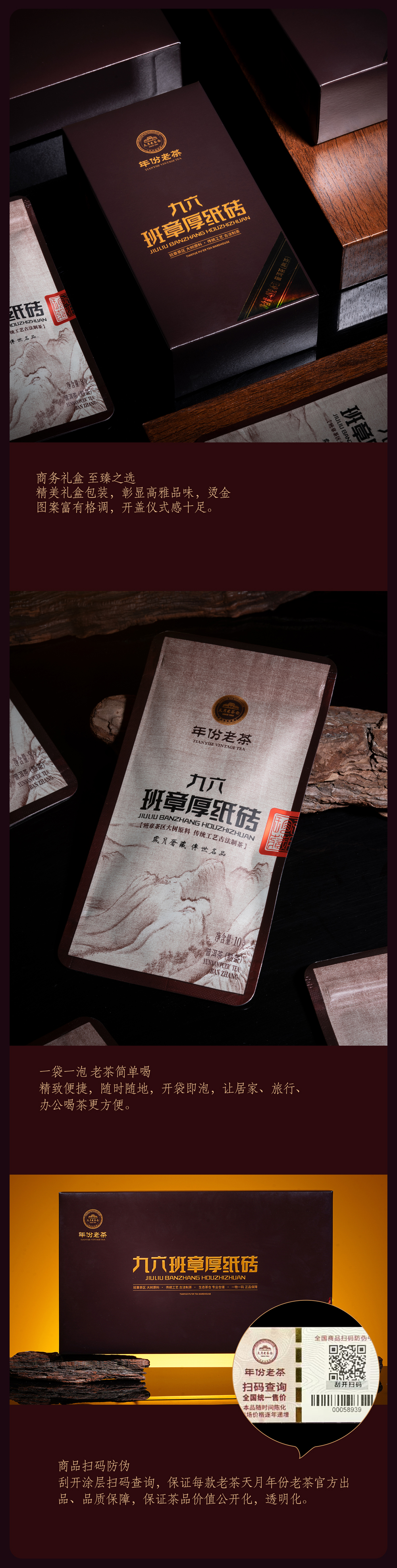 年份老茶 九六班章厚纸砖商务装180g