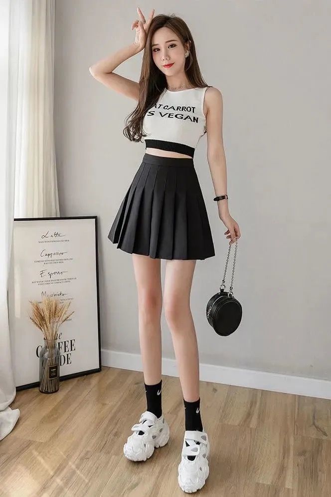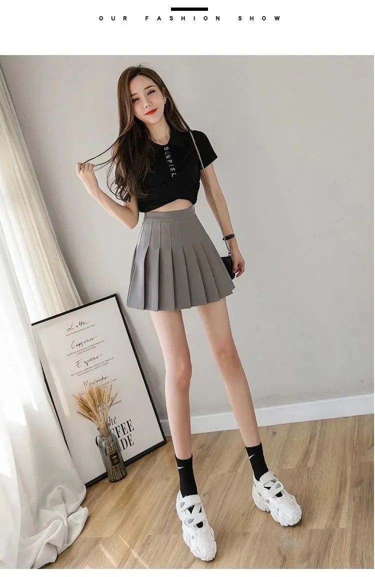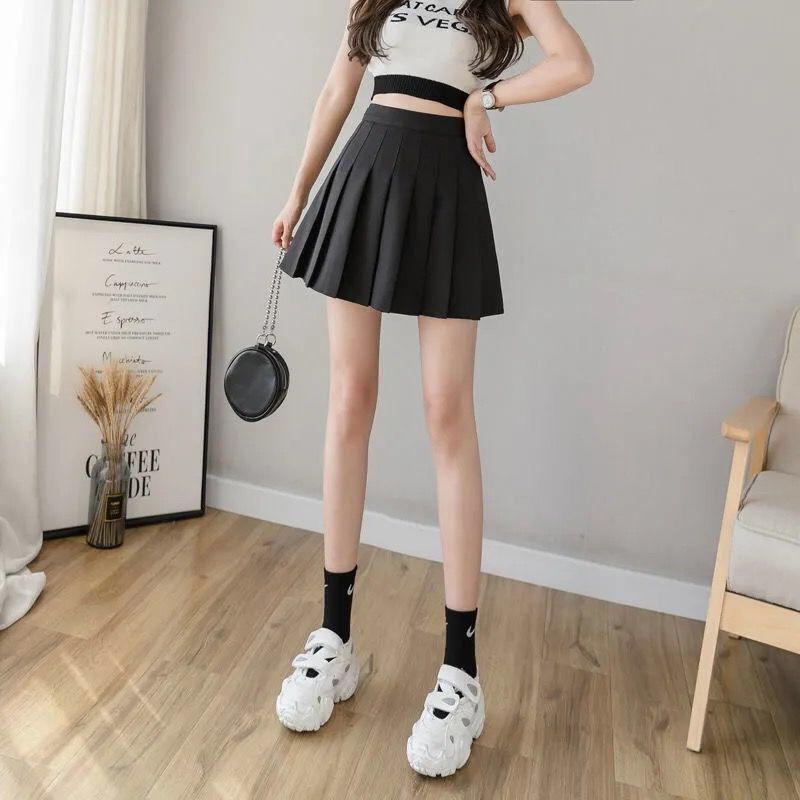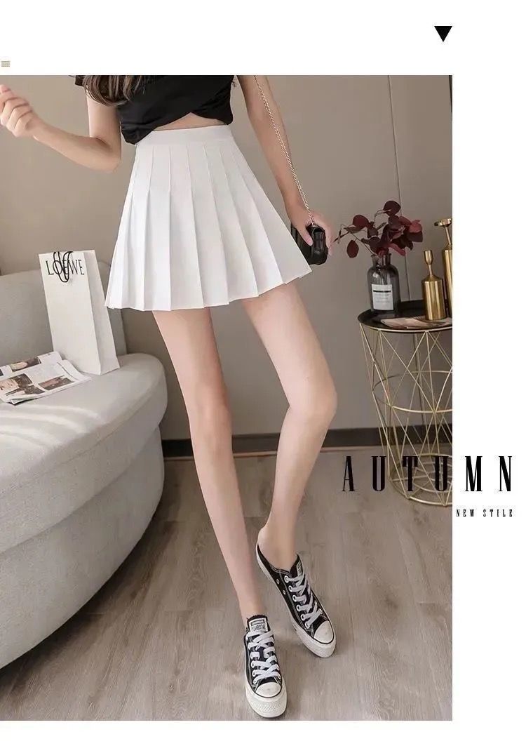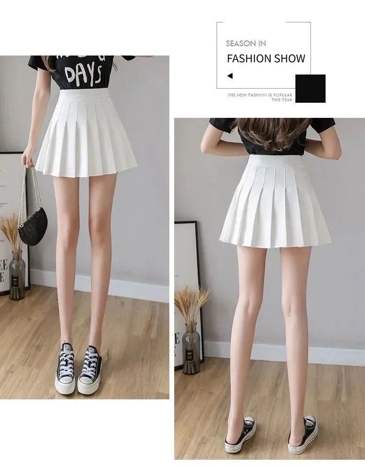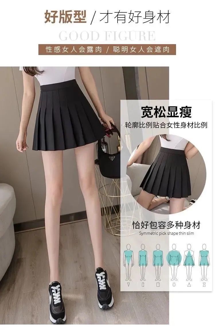 【春夏新款迷你百褶裙】 女夏款高腰显瘦带安全裤防走光大码胖MM半身裙A字短款