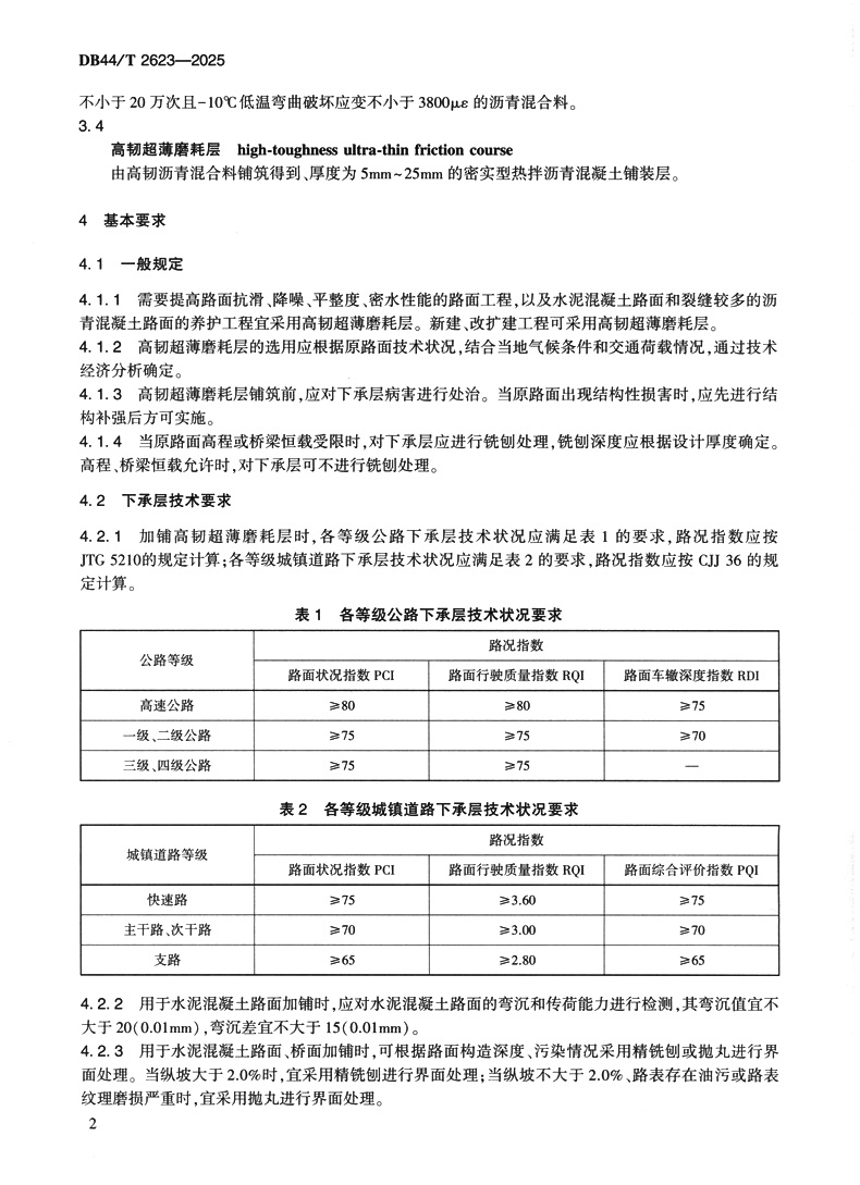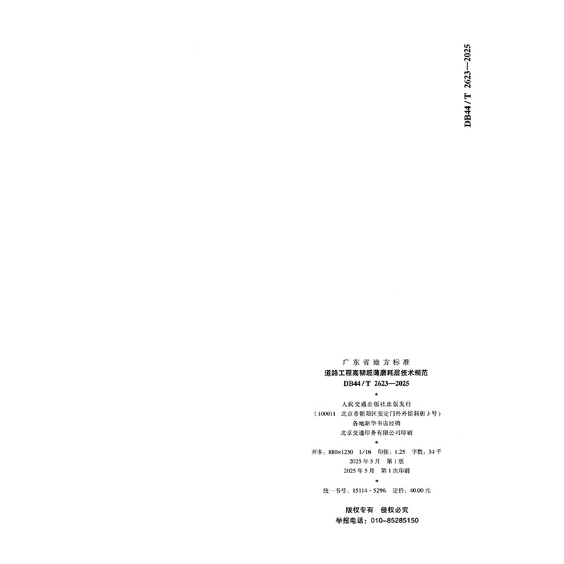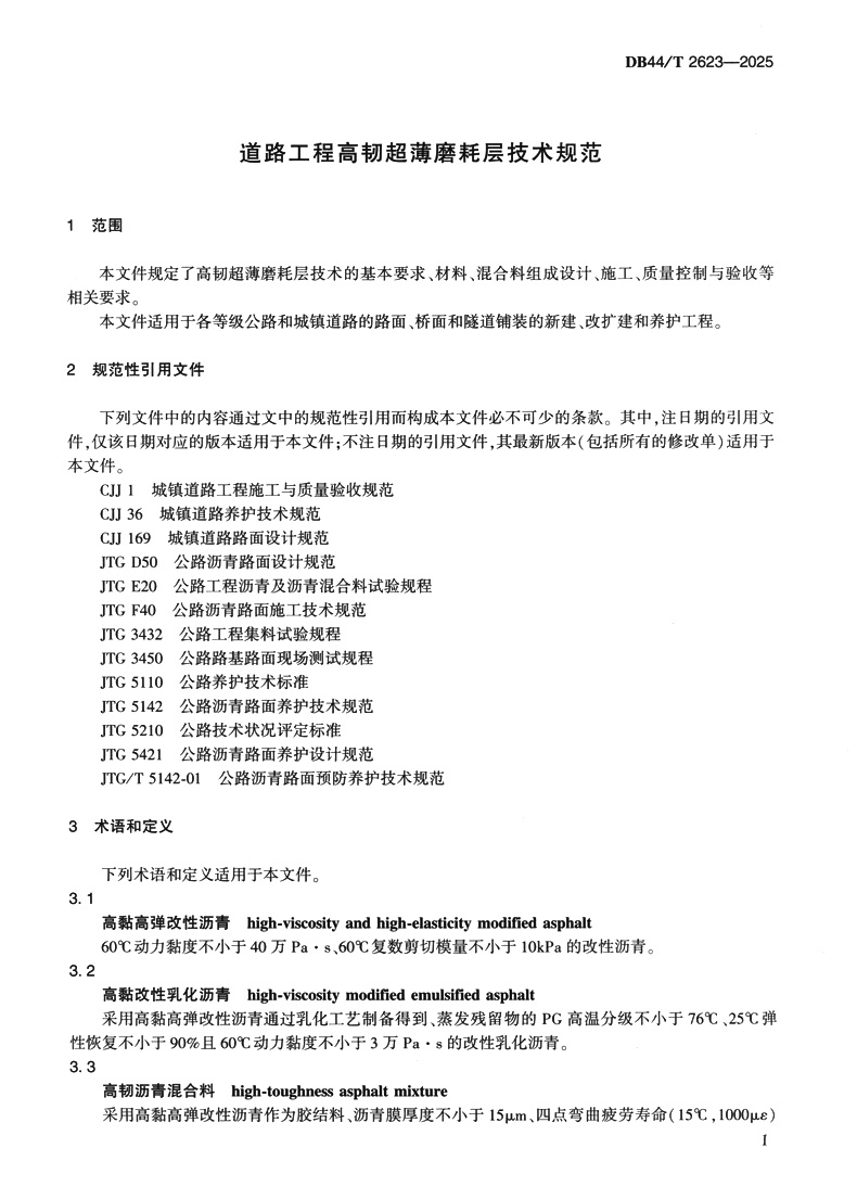 书名:道路工程高韧超薄磨耗层技术规范(DB44/T 2623—2025)