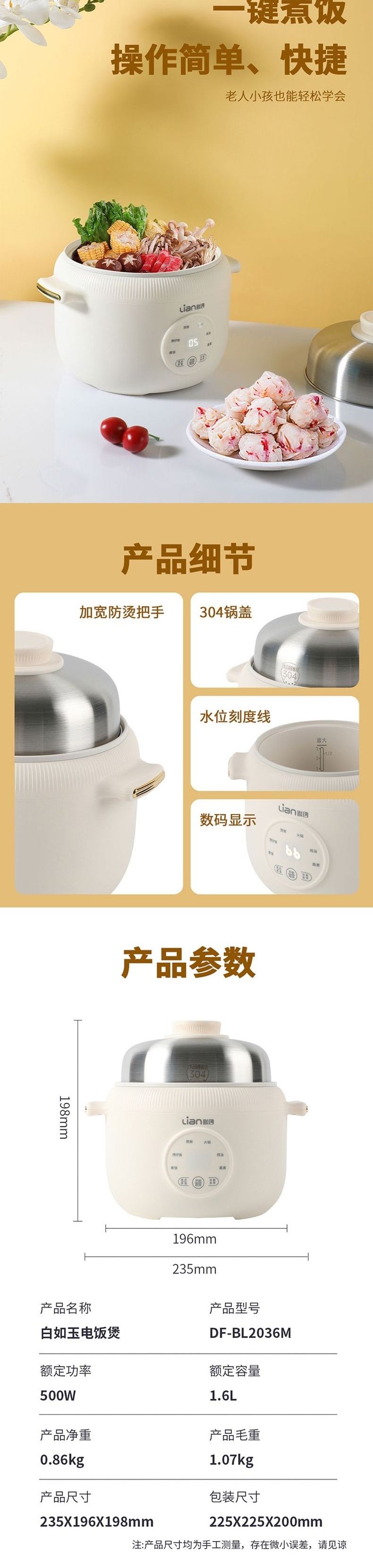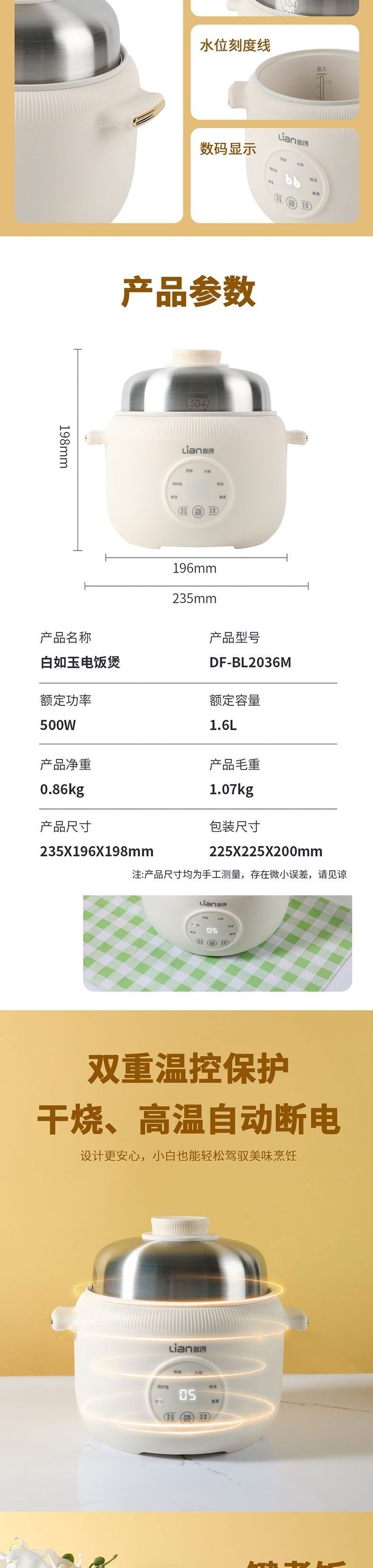 联创 电饭煲 DF-BL2036M 小型电饭锅老式机械迷你煮饭锅
