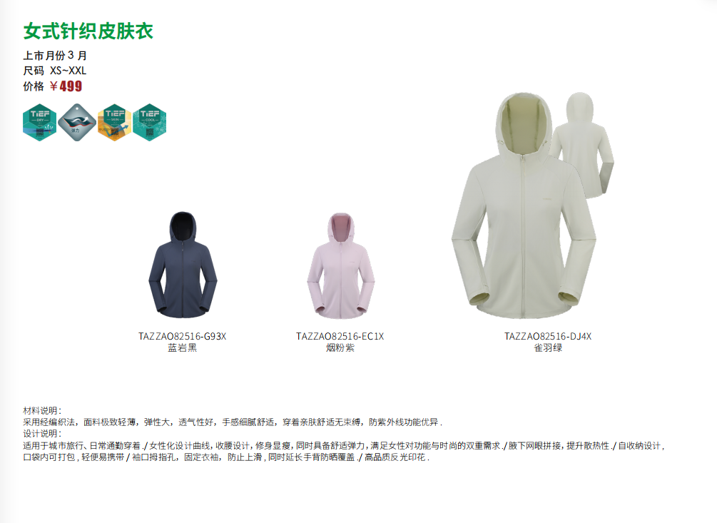 探路者女式针织皮肤衣TAZZAO82516