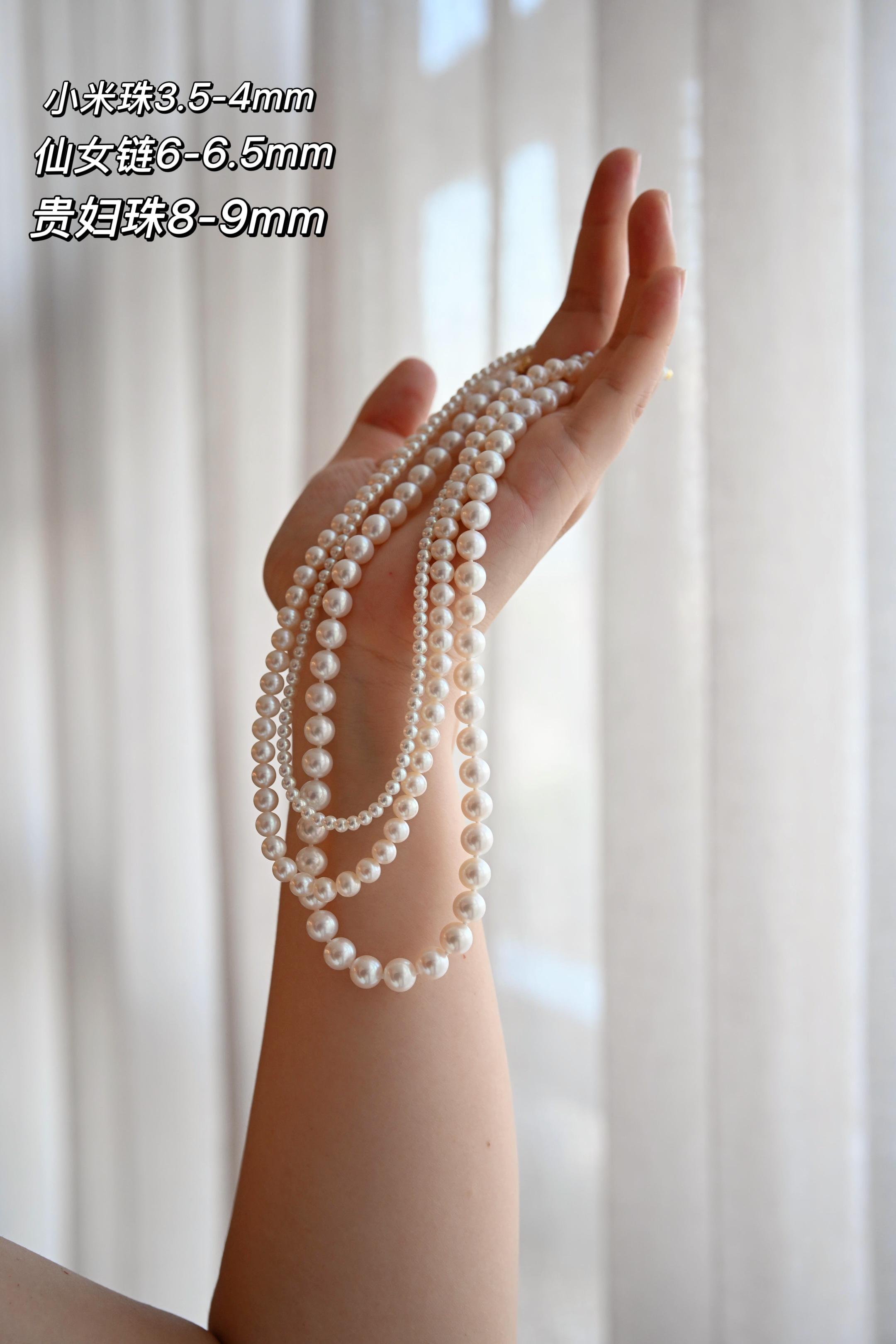 除了小米珠,挑的都是爱迪生品质,光泽完全媲美好品质的海水珠~