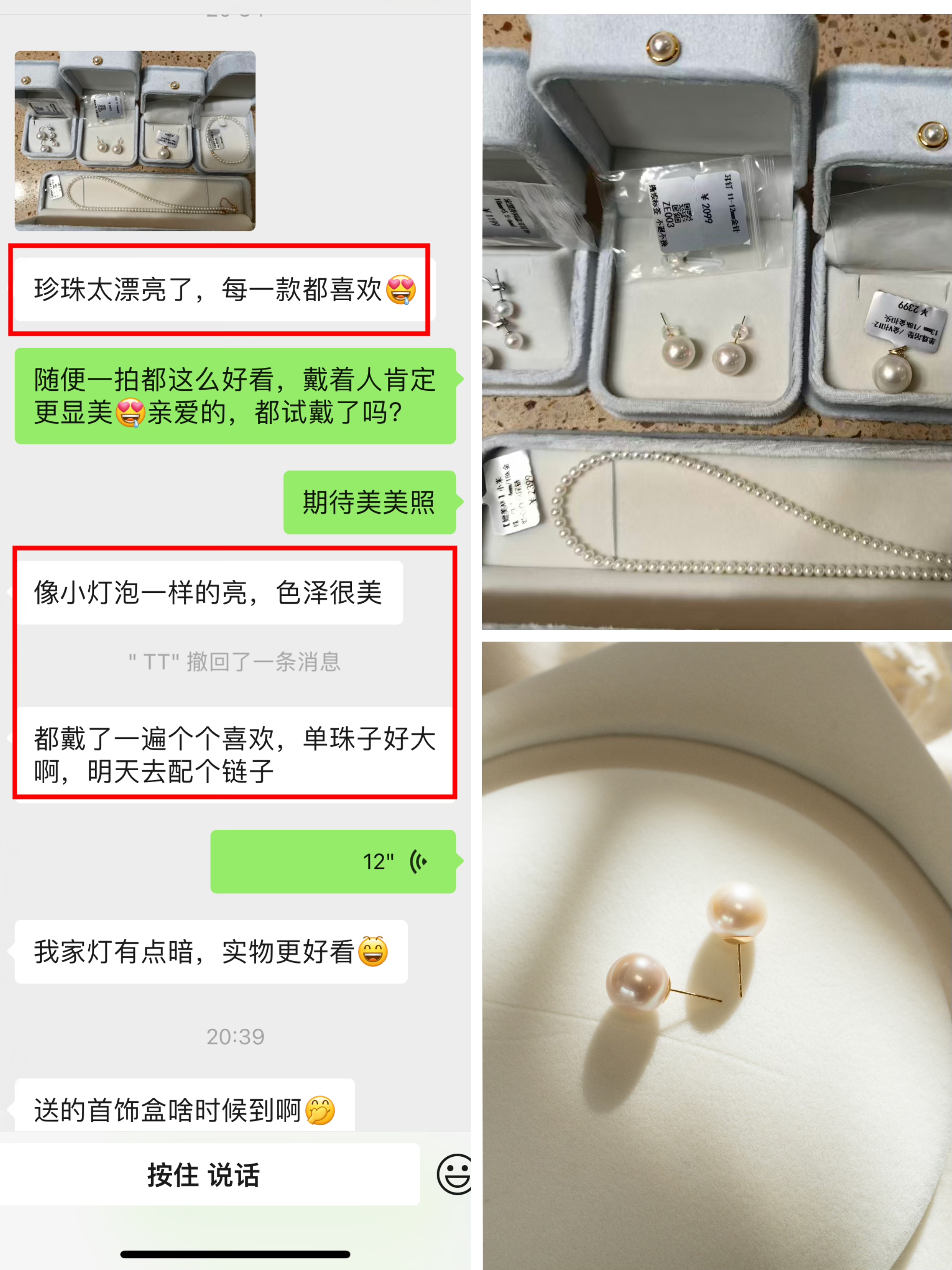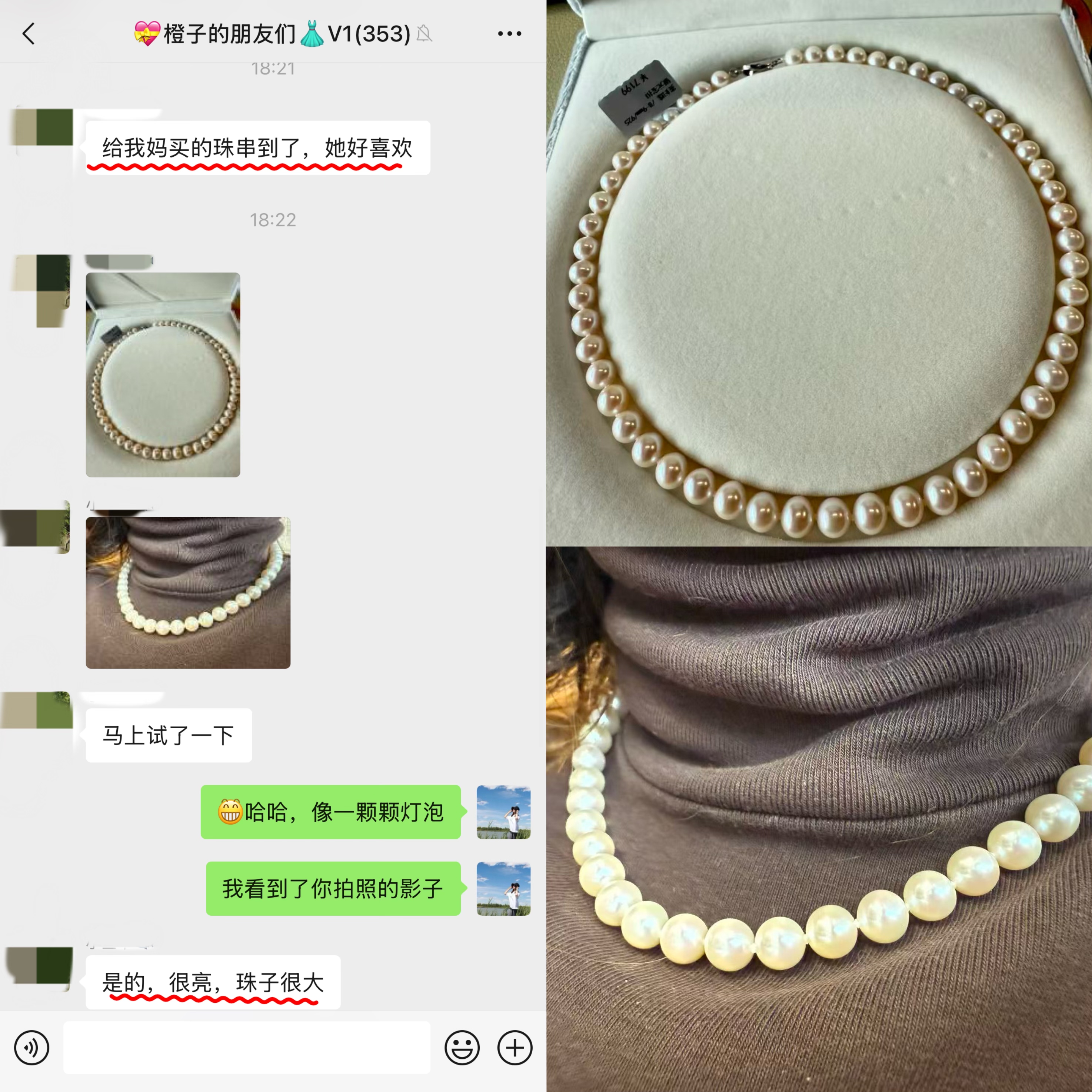 且咱们这次的淡水珠,品质可以随便对比市面普通淡水珠,主要是价格还很香,我就是帮大家来省钱的,哈哈……