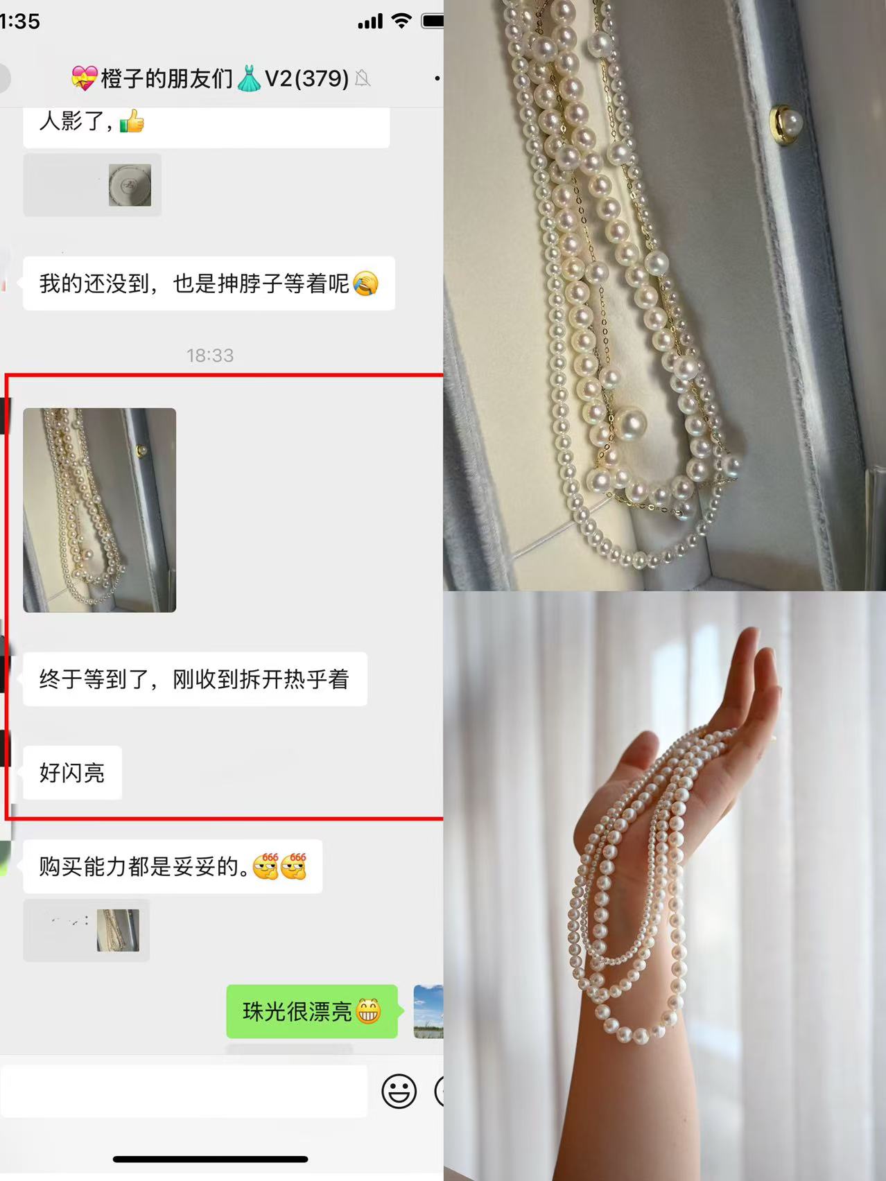 但是难度也来了,珍珠源头工厂不做零售,珠子只能论公斤批发,半斤都不批发的,于是只能跟朋友们联合一起来批发,同时也需要自己来承担售后。