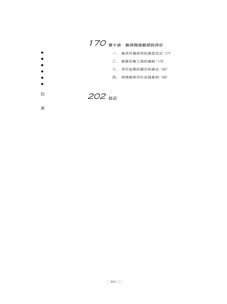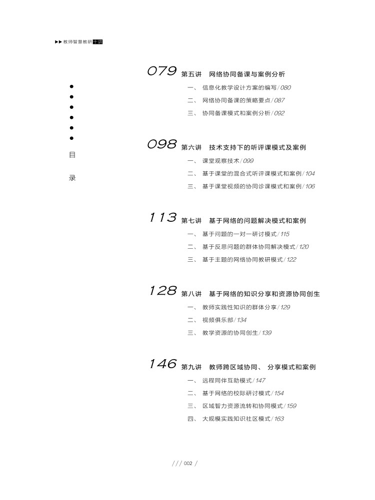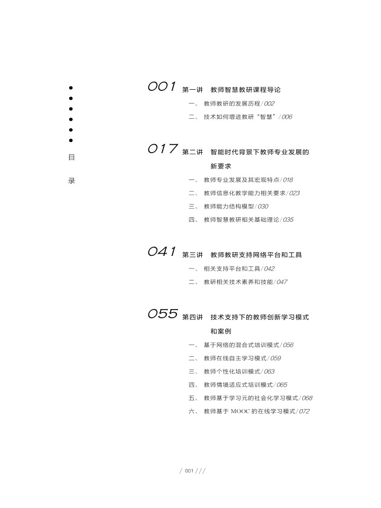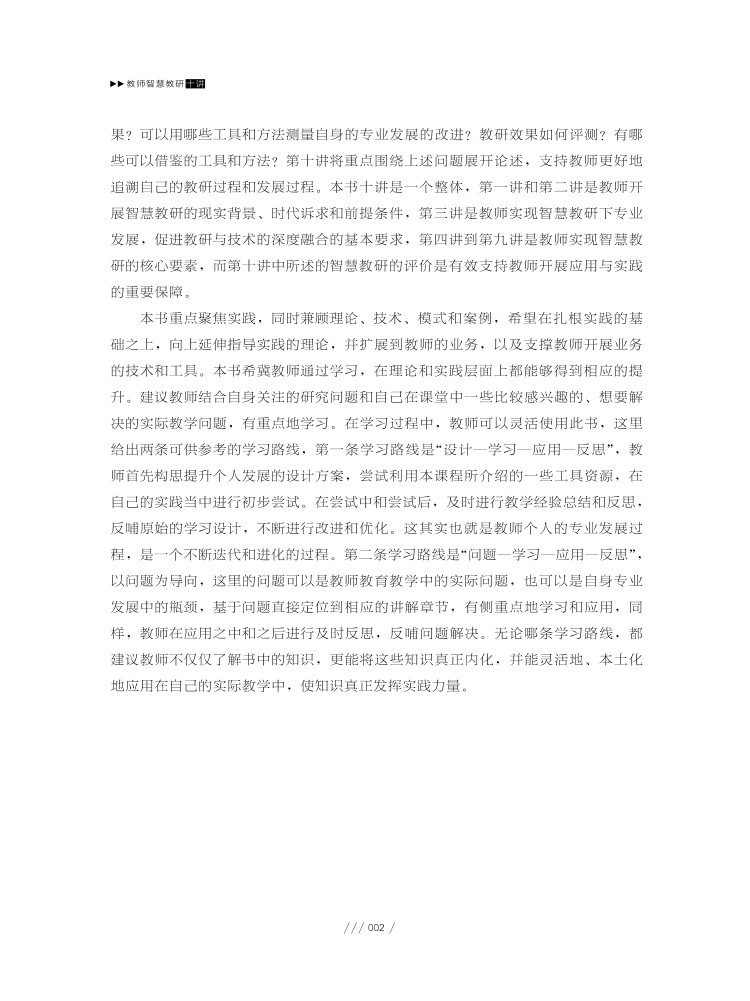 本书对智能时代背景下教师专业知识、能力发展的新要求进行介绍,并围绕着教师的学习、备课、听评课等日常业务,结合具体的案例,对智能技术赋能下的教师学习和教研模式和策略进行分享,以助力教师适应智能时代教师专业发展的需求。本书注重理论和实践相结合,立足于一线教师的日常业务,结合具体案例对相关理论、技术、模式和方法进行深入浅出的分享和剖析,助力老师成为面向未来、适应未来发展需求的数字化教师。本书帮助读者了解智能时代对教师专业知识和能力发展的相关要求。技术对教师学习和发展的支持和作用,学会应用相关平台和工具,并掌握智能技术支持下的教师常见学习和教研模式。