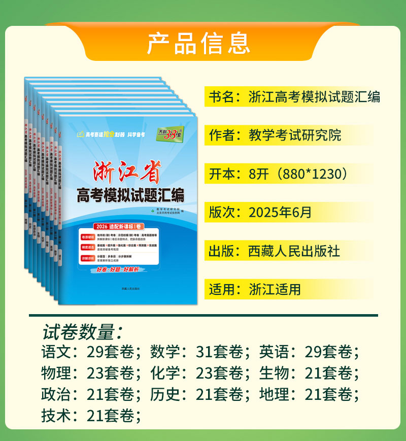 【天利38套】2026新高考浙江省高考模拟试题汇编选考高中新模式测试卷高三真题天利三十八套官方旗舰店总复习