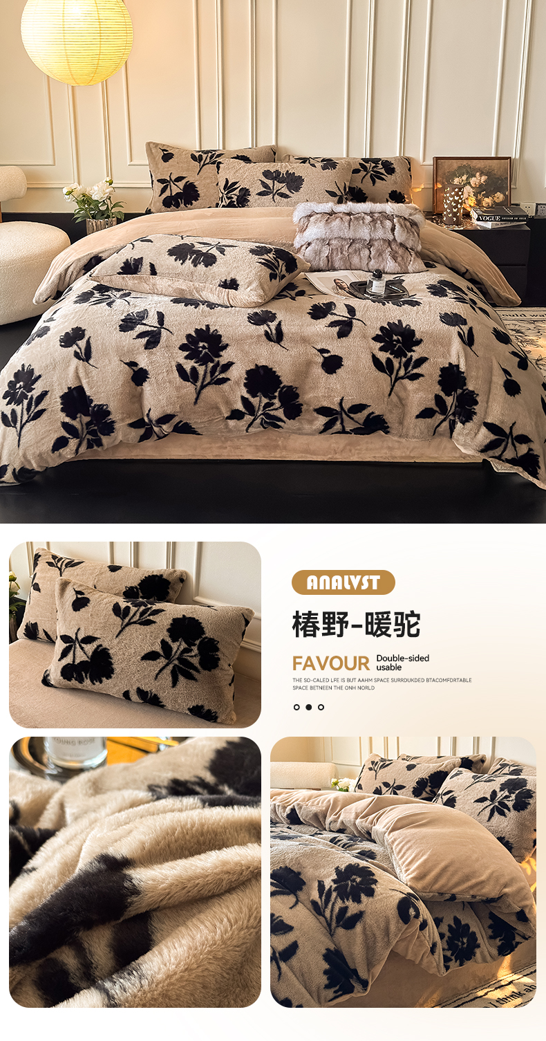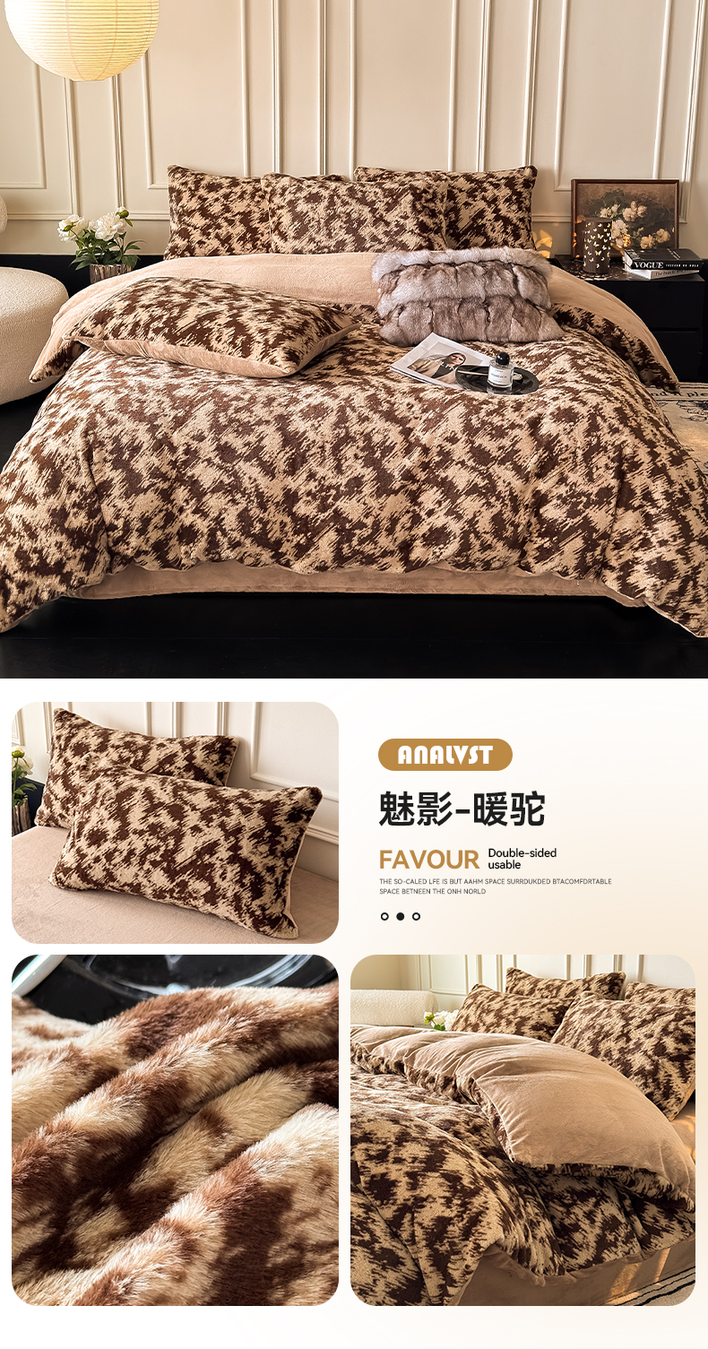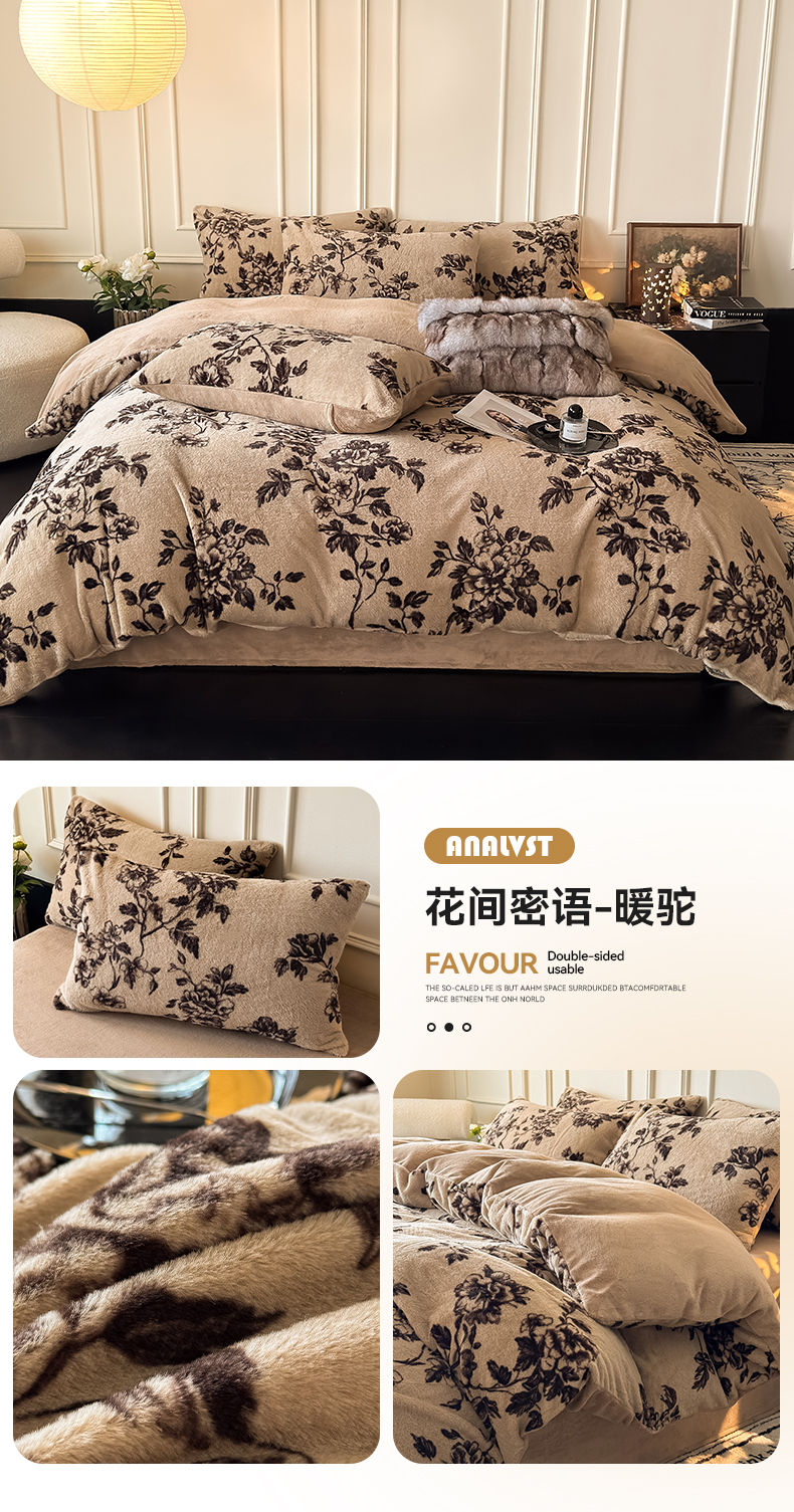 【下架】自然醒冬天加绒双面牛奶法兰绒被套单件冬季加厚珊瑚绒毛茸男被罩三件套床笠四件套JY